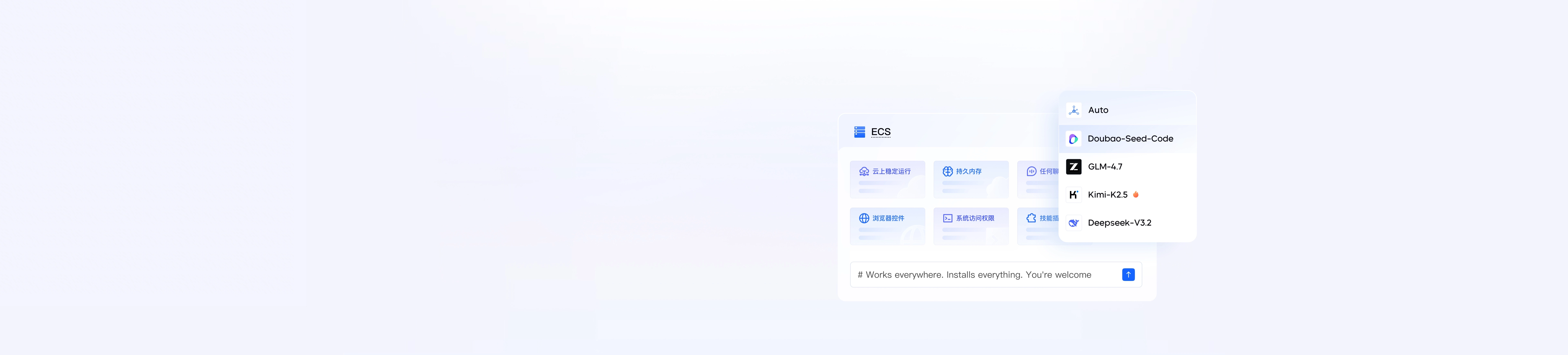 支持 Doubao、GLM、DeepSeek、Kimi等模型