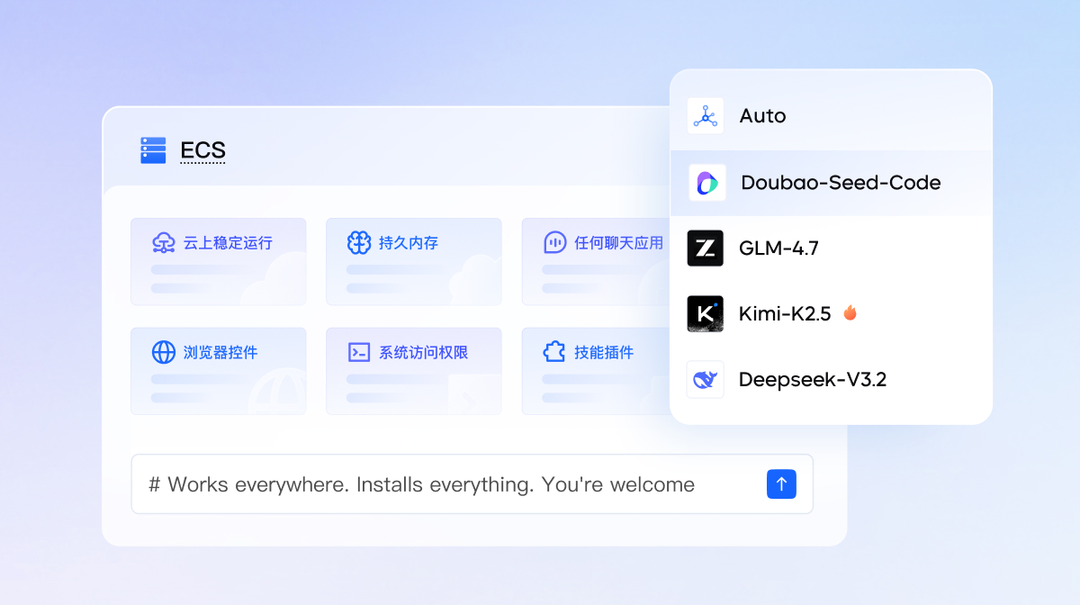 - ArkClaw:依托火山引擎GPU云与专属ECS资源,算力弹性伸缩,7×24小时稳定运行,可支撑复杂多步骤推理、工具交互等高负载任务