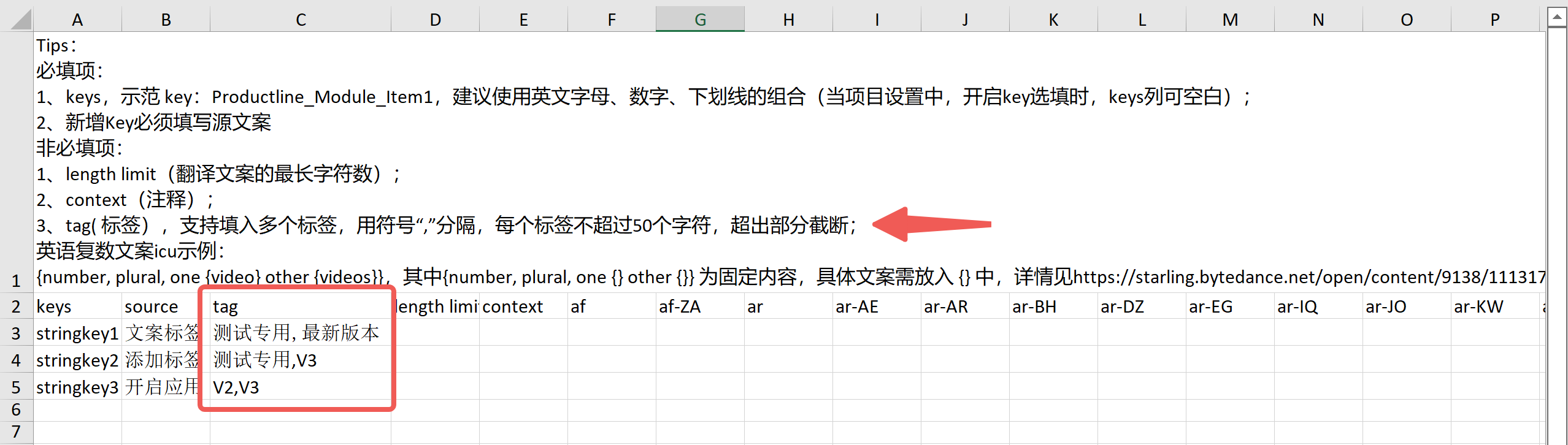 标签(tag)列支持填入多个标签,用符号“,”分隔,每个标签不超过50个字符,超出部分自动截断。