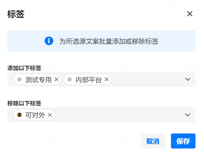 ⚠注意: 删除标签后,系统将从源文案中移除该标签,操作不可恢复。