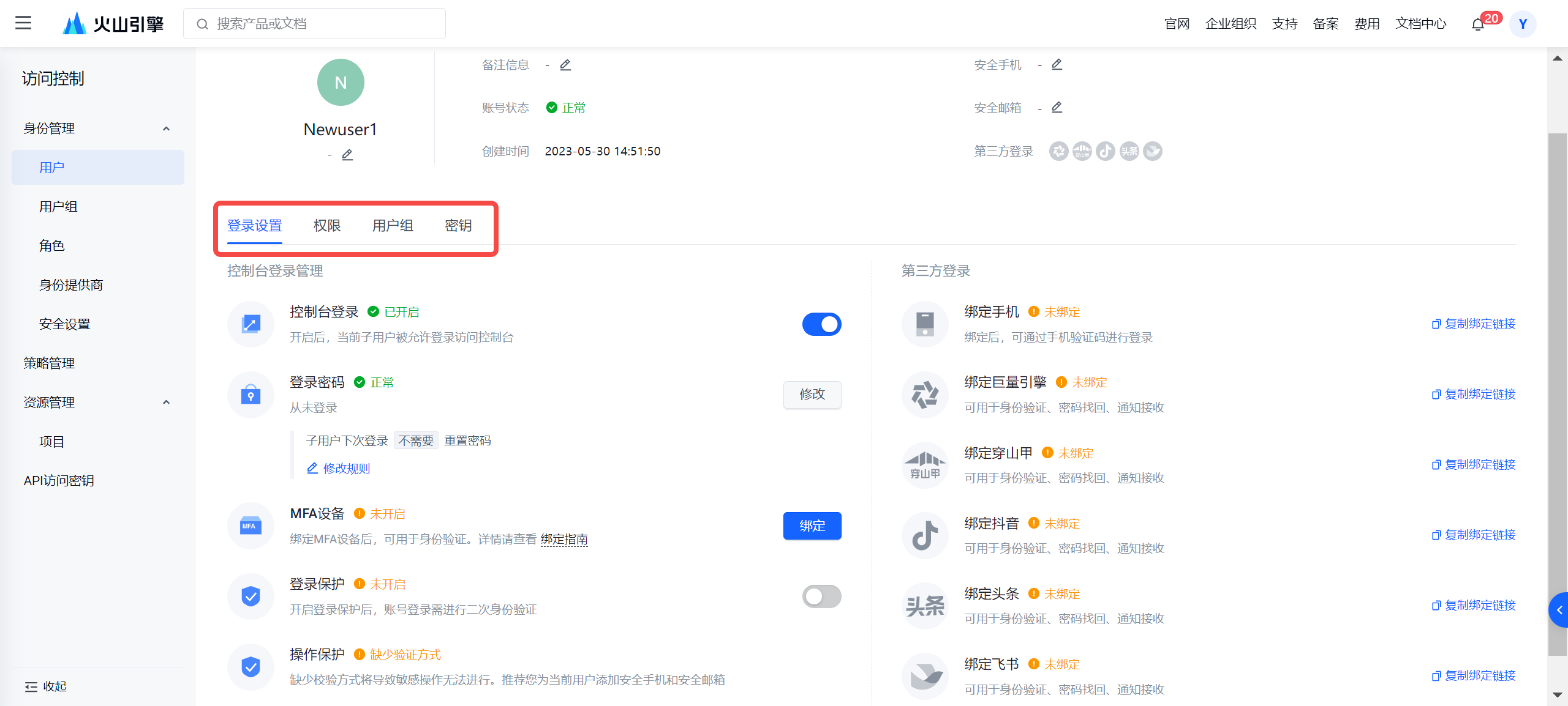 - 继续点击【下一步】并提交,完成创建子账号,可以在用户列表管理或删除用户