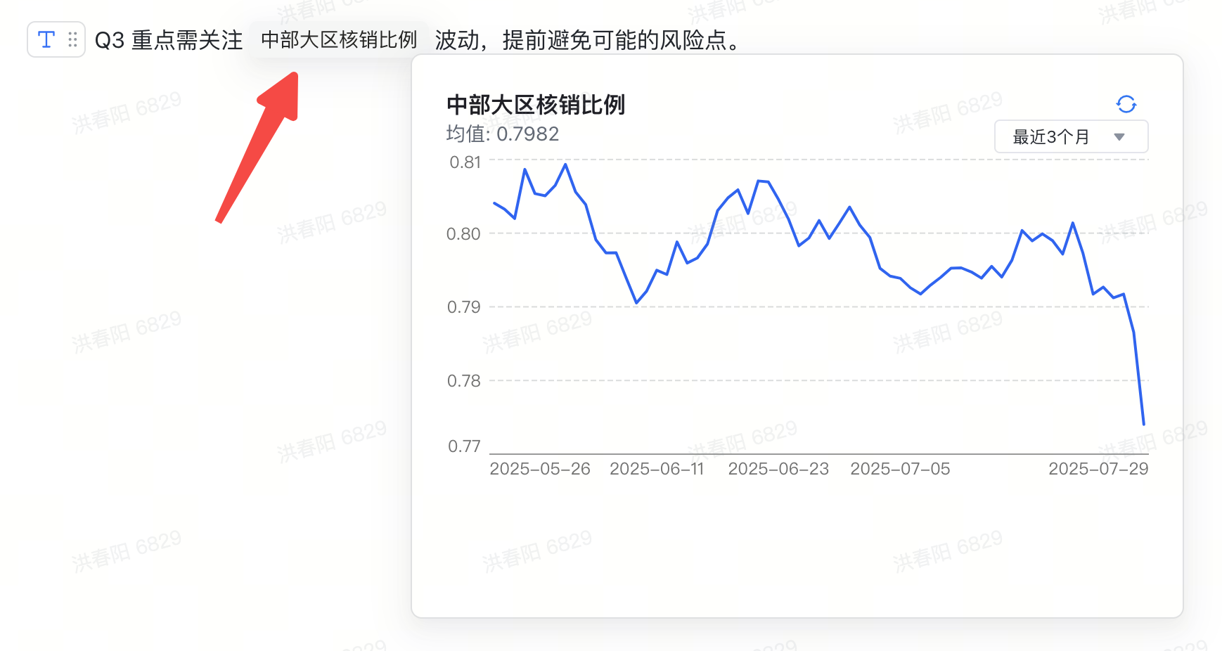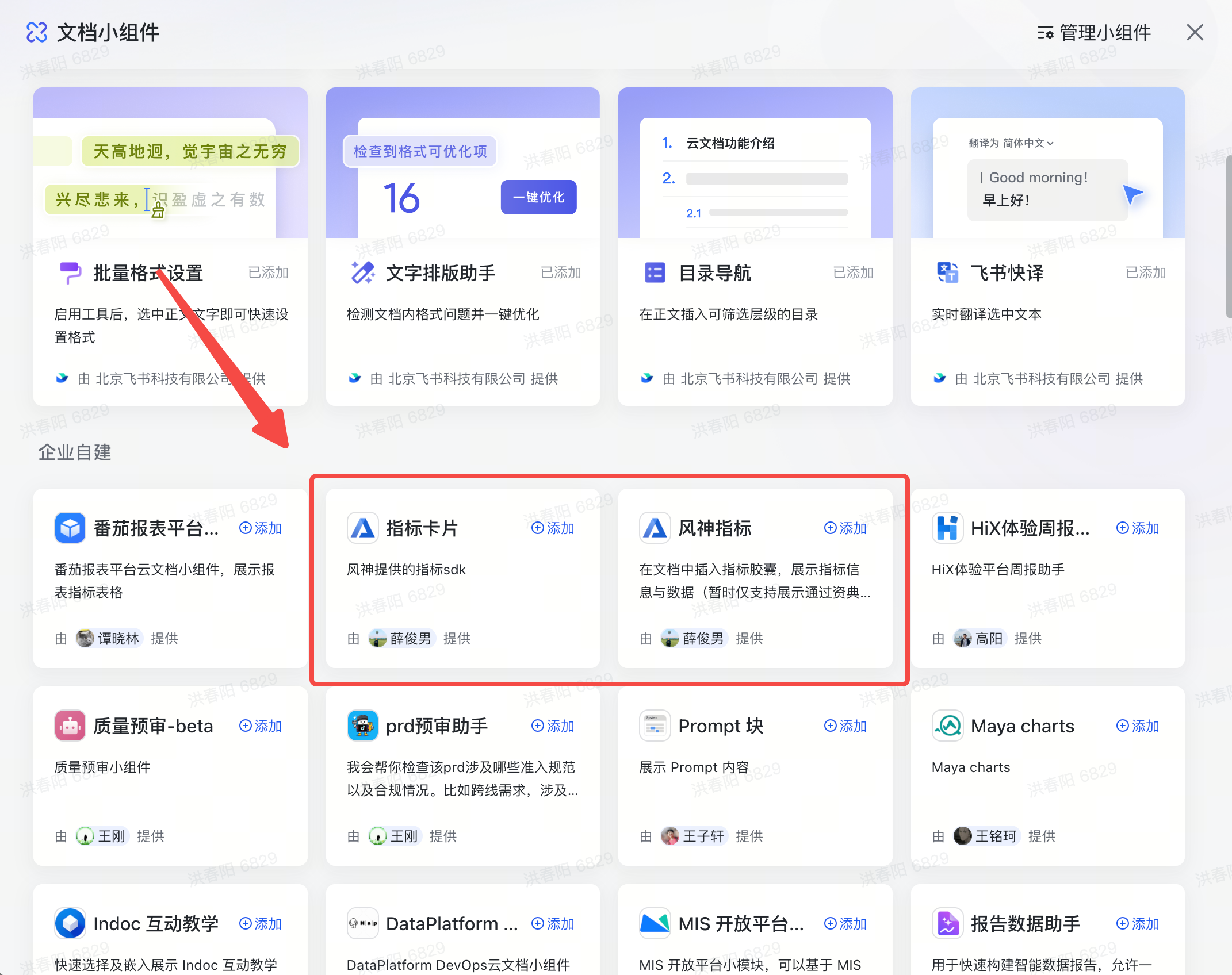 在添加完组件之后,就可以在飞书文档中,通过「 /DataWind 」命令,来引用保存过的指标。