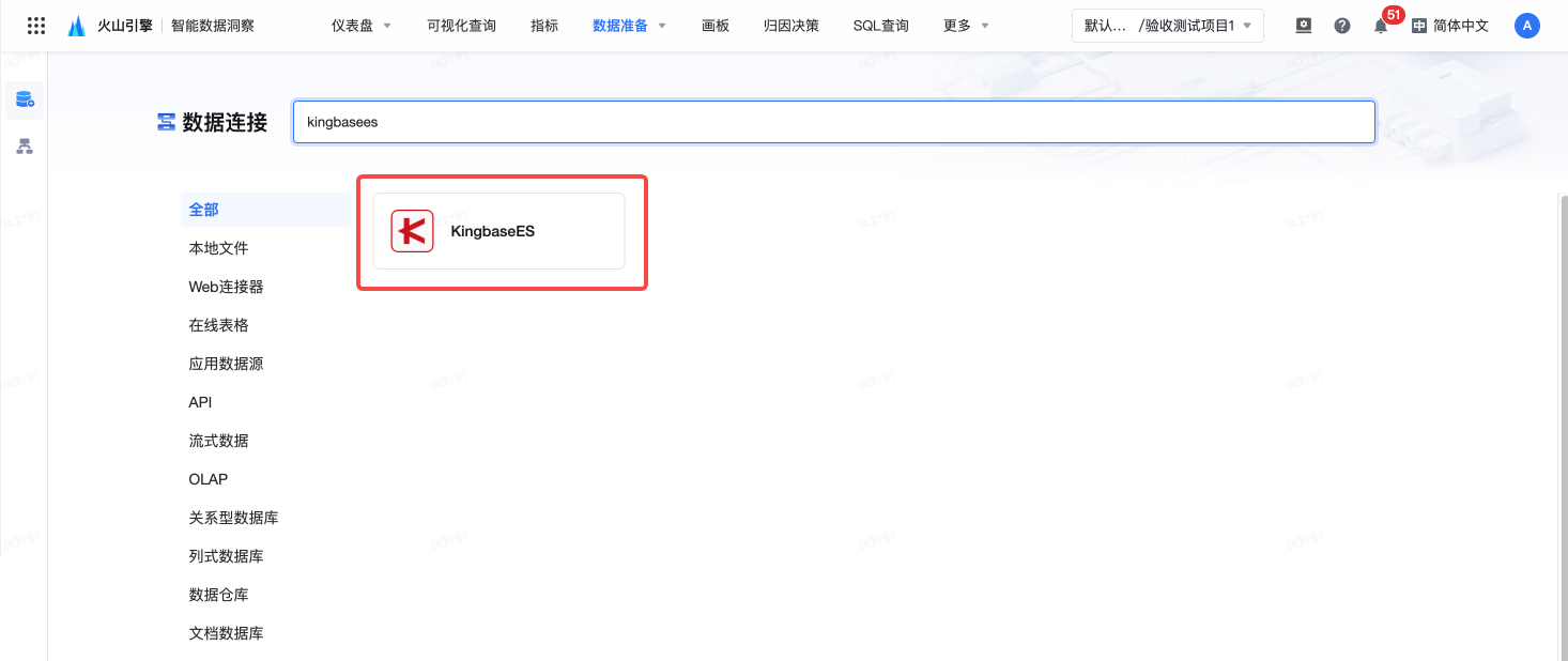 操作路径:「数据准备」-「数据连接」-「KingbaseES」