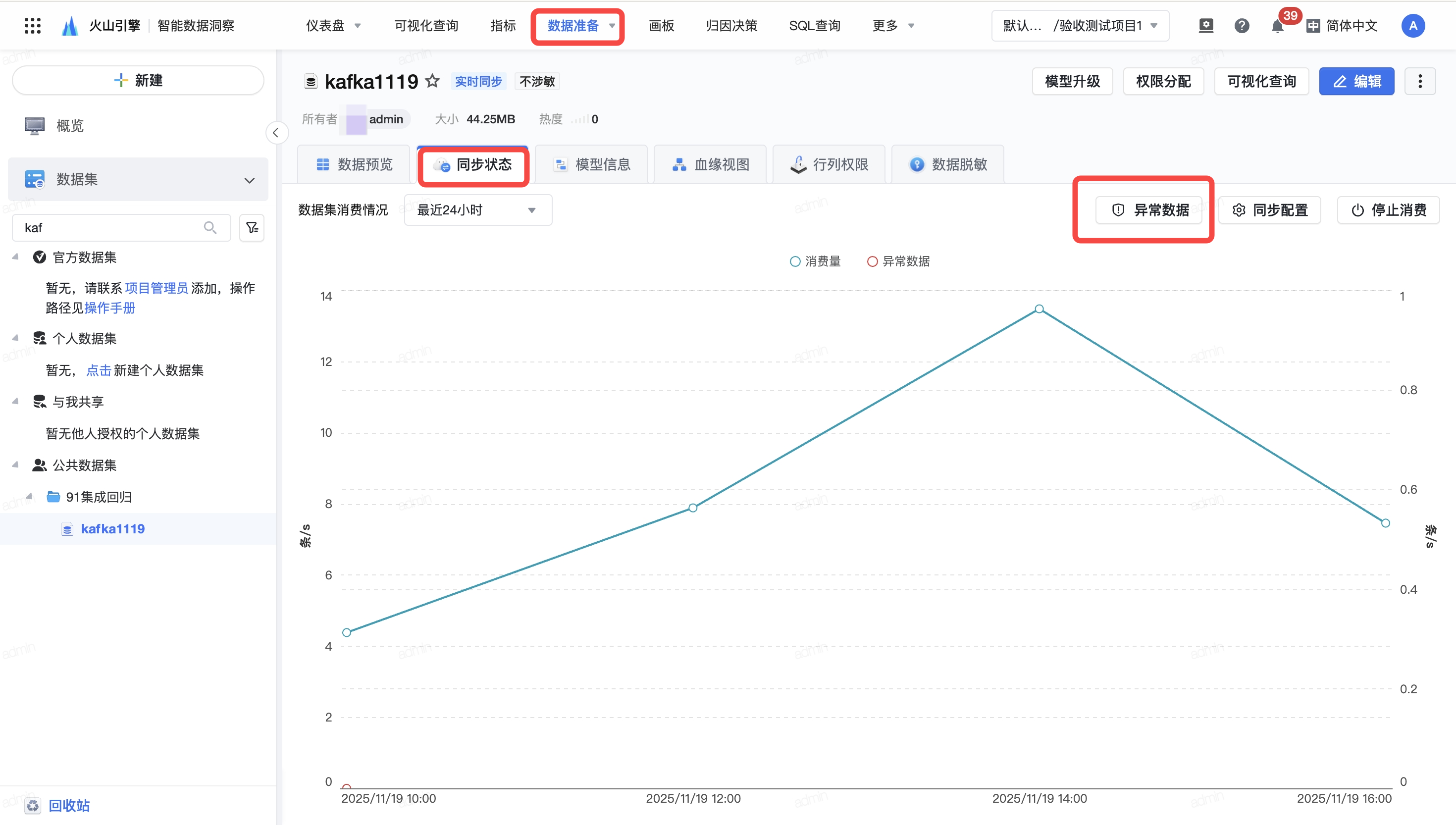 操作路径:「数据准备」-「数据集」-「同步状态」-「异常数据」
