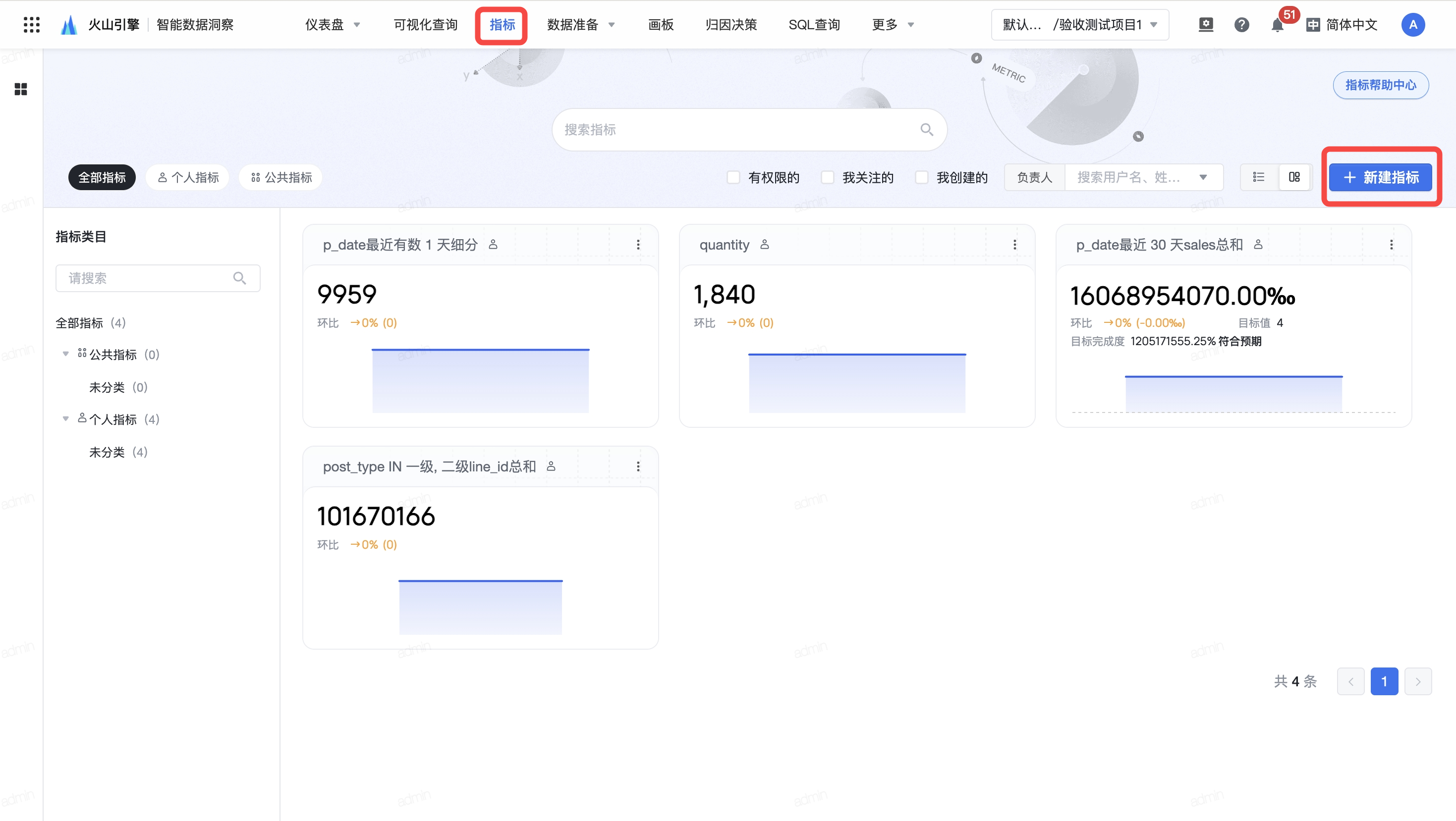 私有化环境中,新版本允许用户在指标模块中新建指标时选择分析主题数据集,并在指标首页和详情页中展示这些指标字段。用户可以在可视化查询页中创建衍生指标并保存到指标首页,同时支持对分析主题数据集中的字段进行权限管理。