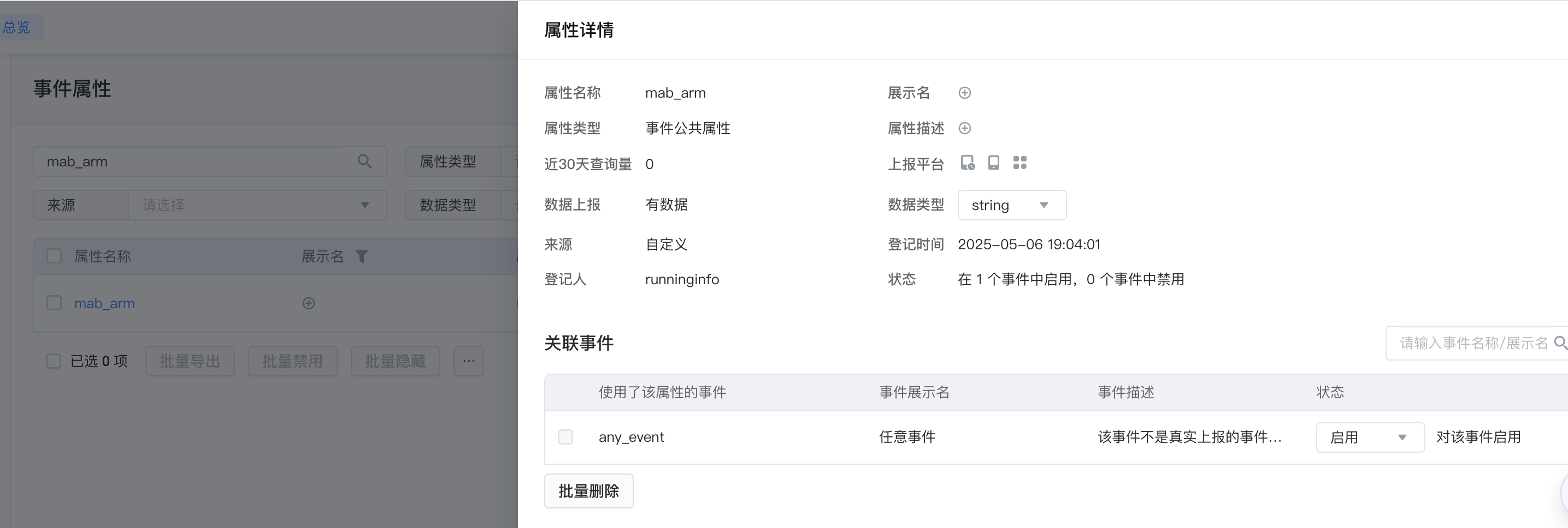 您需要先手动创建一个自定义的“事件公共属性”,用于后续上报MAB实验配置参数的维度值。事件公共属性的配置要求如下: