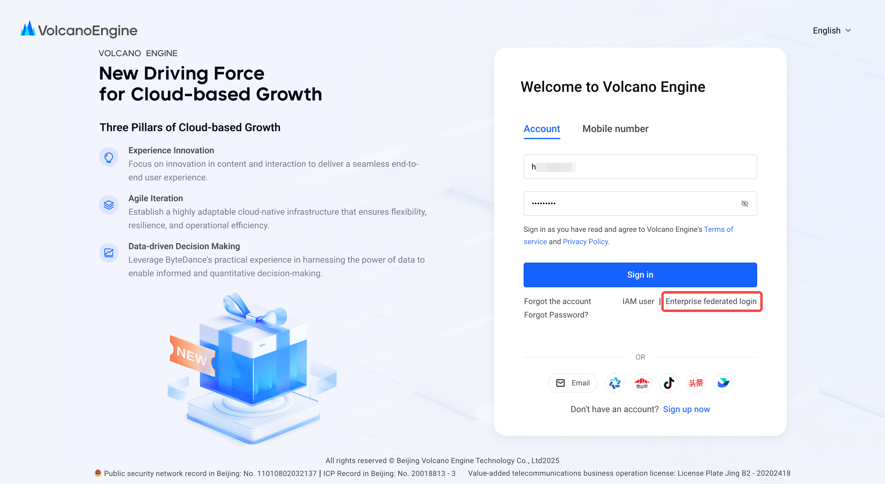 3. Successfully login to Volcano Engine