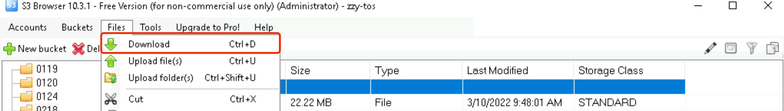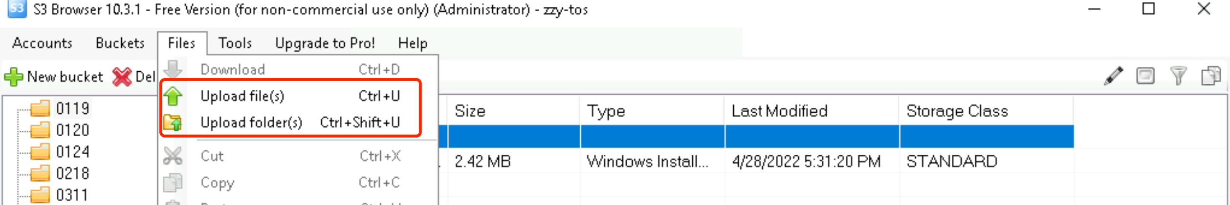 S3 Browser 是一款免费的 Amazon S3 Windows 客户端工具,火山引擎 TOS 兼容 S3 协议,所以您可以使用 S3 Browser 来管理您的 TOS 资源。