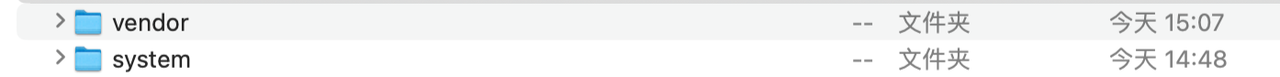 需要内置的文件准备完成后,将 system 文件夹和 vendor 文件夹(若有)一起打包成 file.zip 文件。参考以下示例: