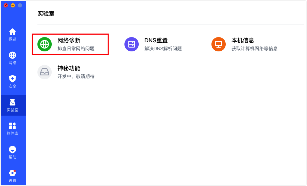 当遇到网络无法访问、VPN 连接失败、无法接收消息时,可在客户端的实验室 > 网络诊断功能中,对网络连接、DNS 服务、API 可达性、VPN 服务进行检测。