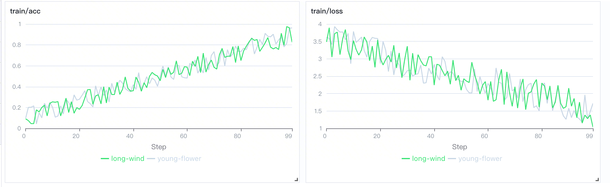 使用 wandb.log 记录指标关于 step 的变化情况。