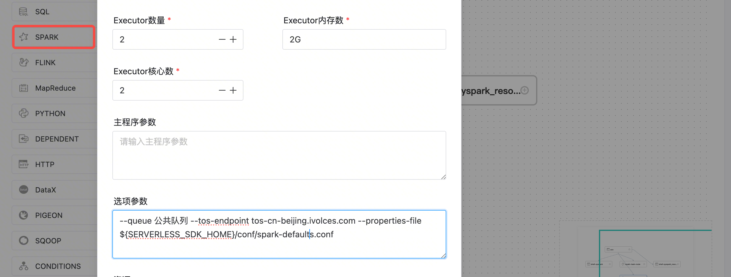 提交 Spark Task 前,您需要先配置好使用的是 SPARK1 还是 SPARK2。