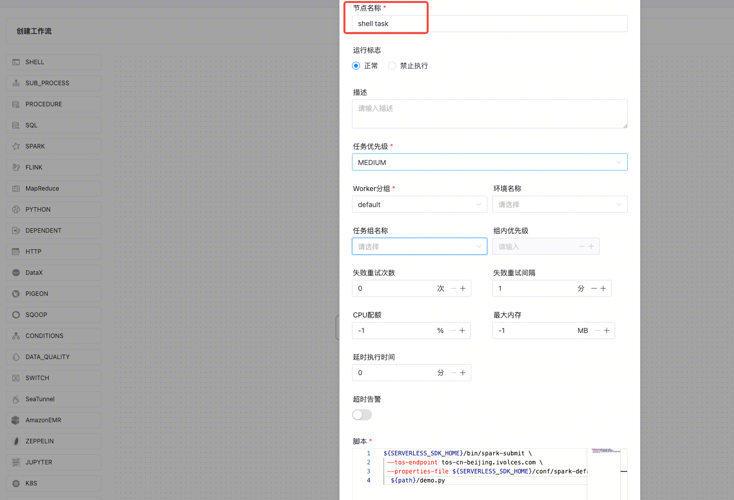 取消dolphin任务的同时,如果您希望同步取消远端的 EMR Serverless 任务时,需要配置 DolphineScheduler shell kill应用实践。