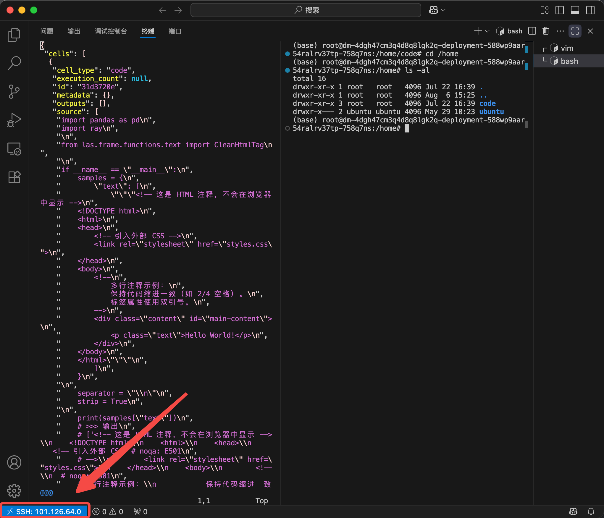 在本地或者其他设备上使用终端或者 VSCode 等 IDE 远程连接开发机时,可以采用 SSH 直连的方式快速开始数据处理任务编写、调试和运行。
