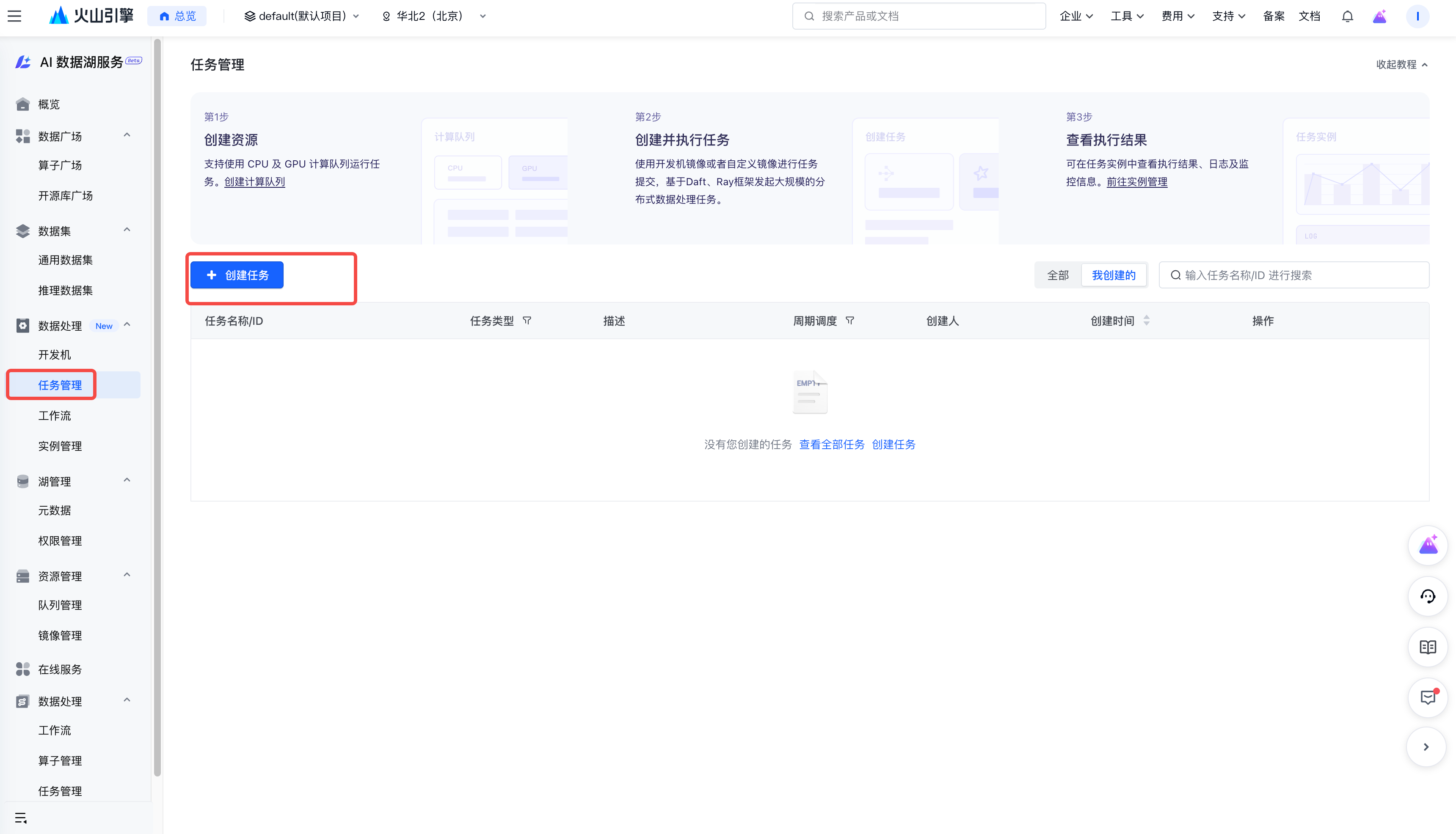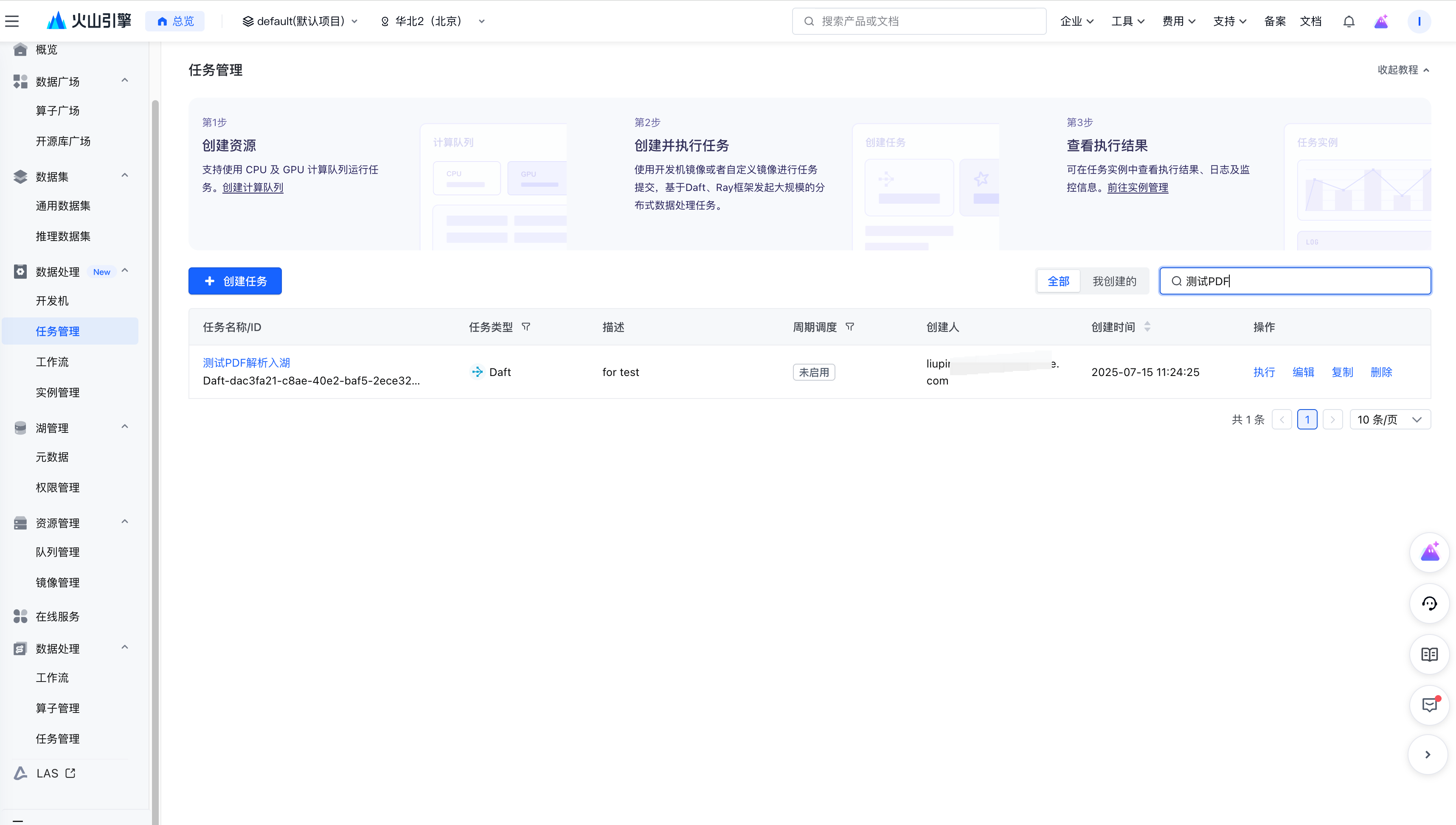 登录LAS 控制台 > 数据处理 > 任务管理 > 操作列 > 执行。