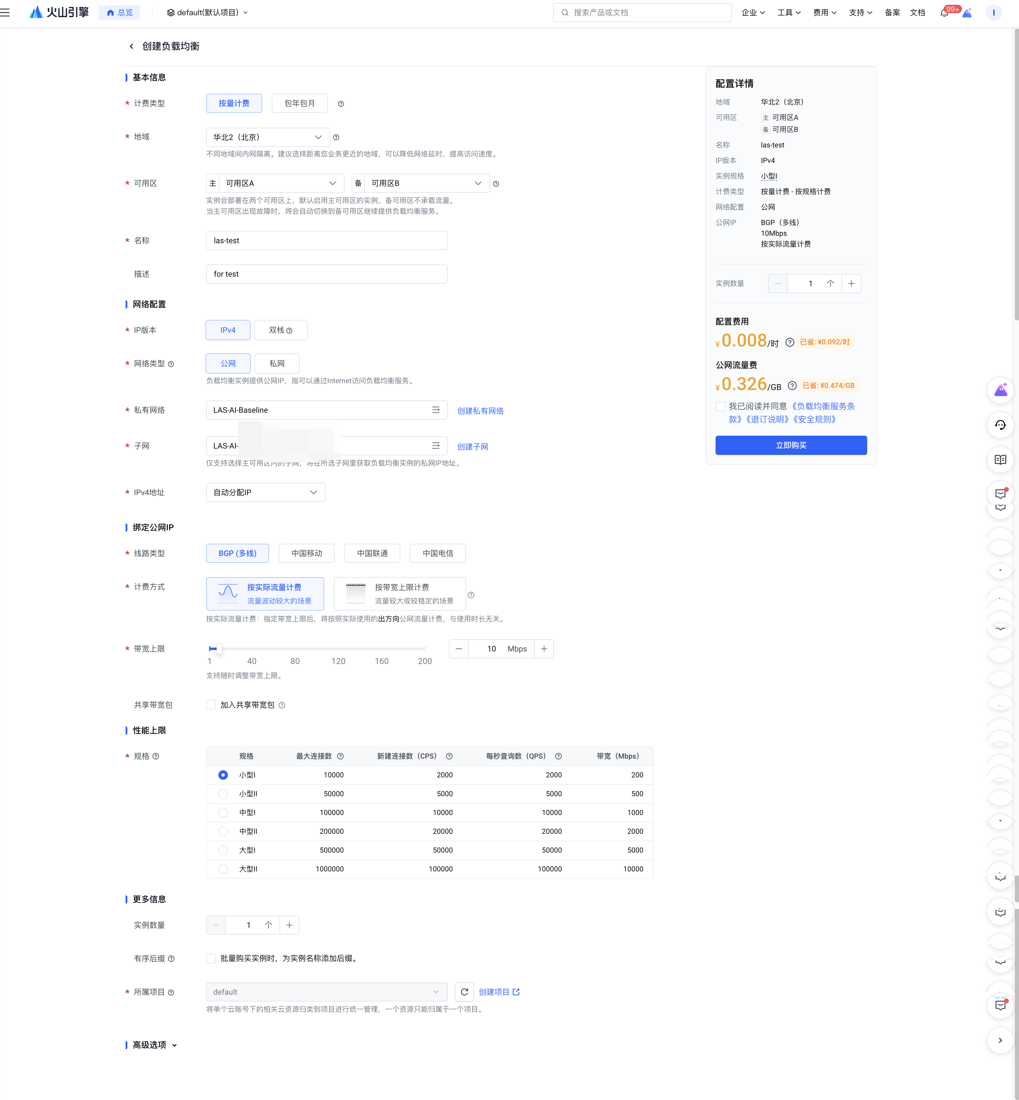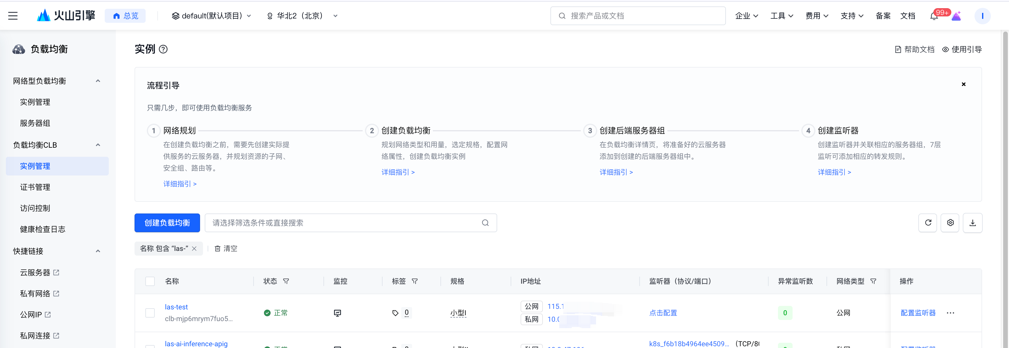 所属项目 | 选择CLB实例所属的项目。公网CLB实例加入项目后,同步创建的公网IP也会加入相同项目。更多信息请参见项目管理。 | default | |