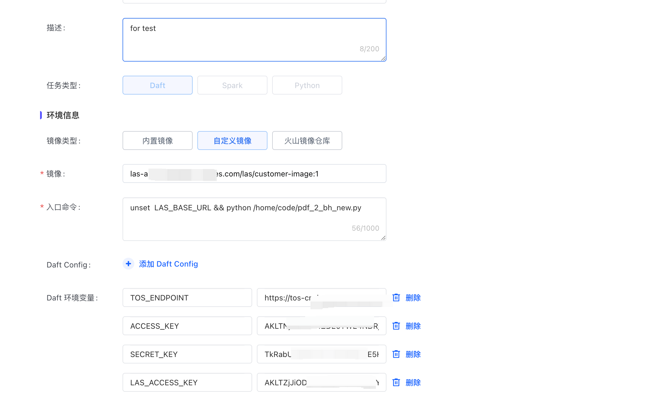 环境变量设置: LAS_TOS_ACCESS_KEY和ACCESS_KEY 可设置相同值。