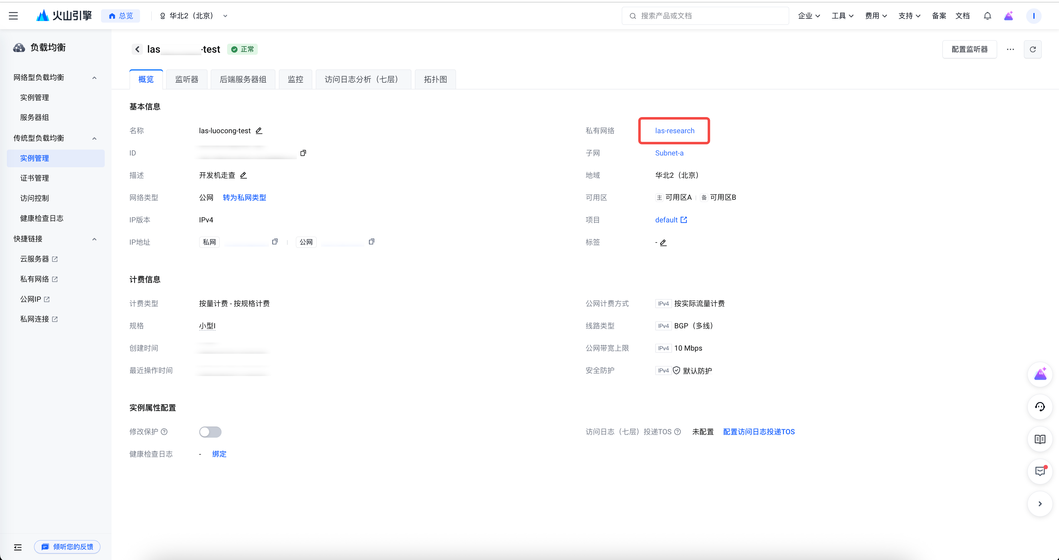 创建完成后,进入负载均衡详情页,单击私有网络项进入所属的 VPC 进行安全组配置。