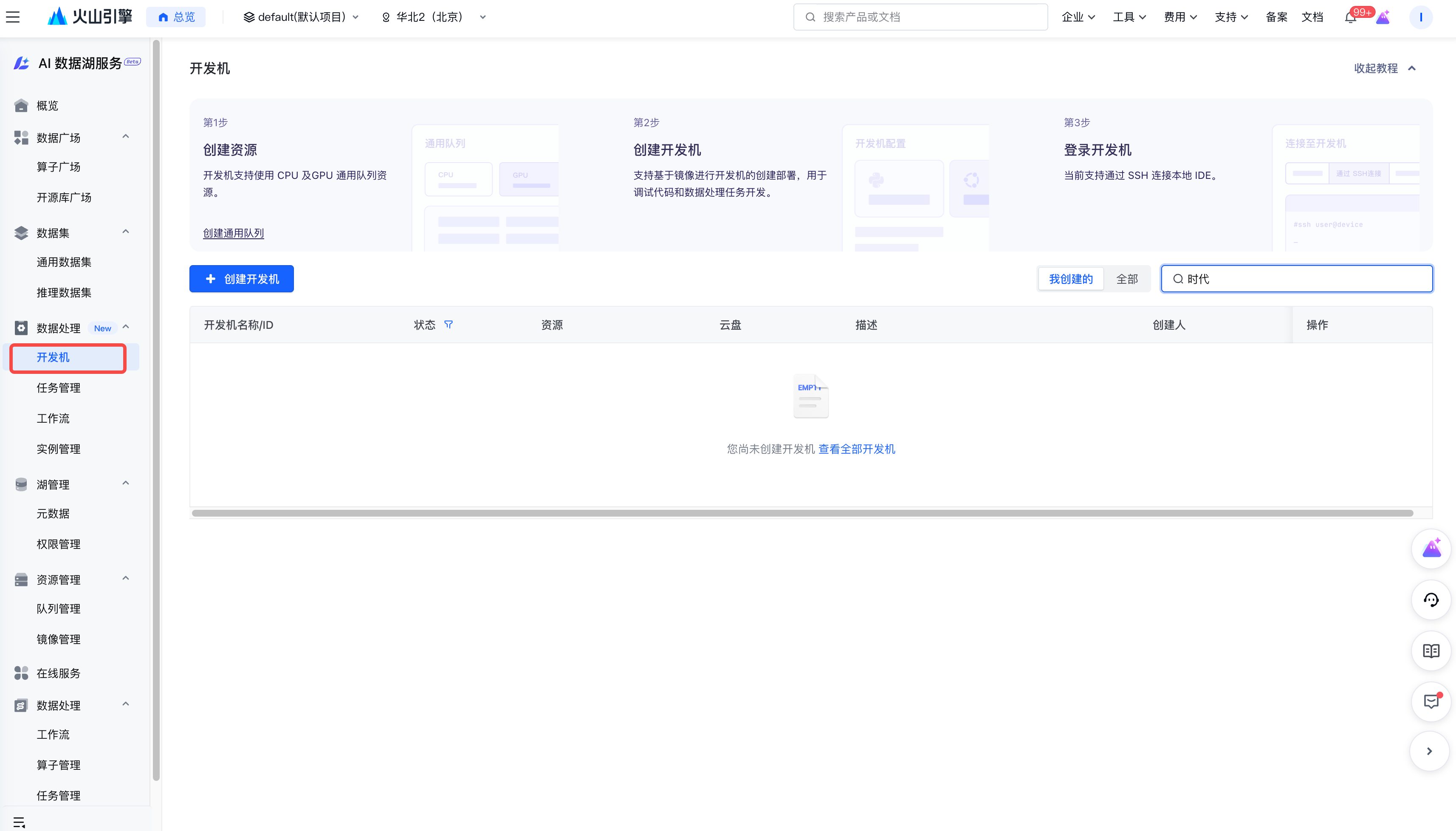 开发机是 LAS 为算法开发者提供的专业开发环境,预先继承了丰富的开源镜像,减少环境搭建的成本,在资源支持层面,开发机提供灵活的计算资源配置,涵盖 CPU 与 GPU,能够满足不同复杂度任务的算力需求。同时,它支持 TOS、vePFS 等存储系统的挂载,为数据存储与读取提供稳定支撑。