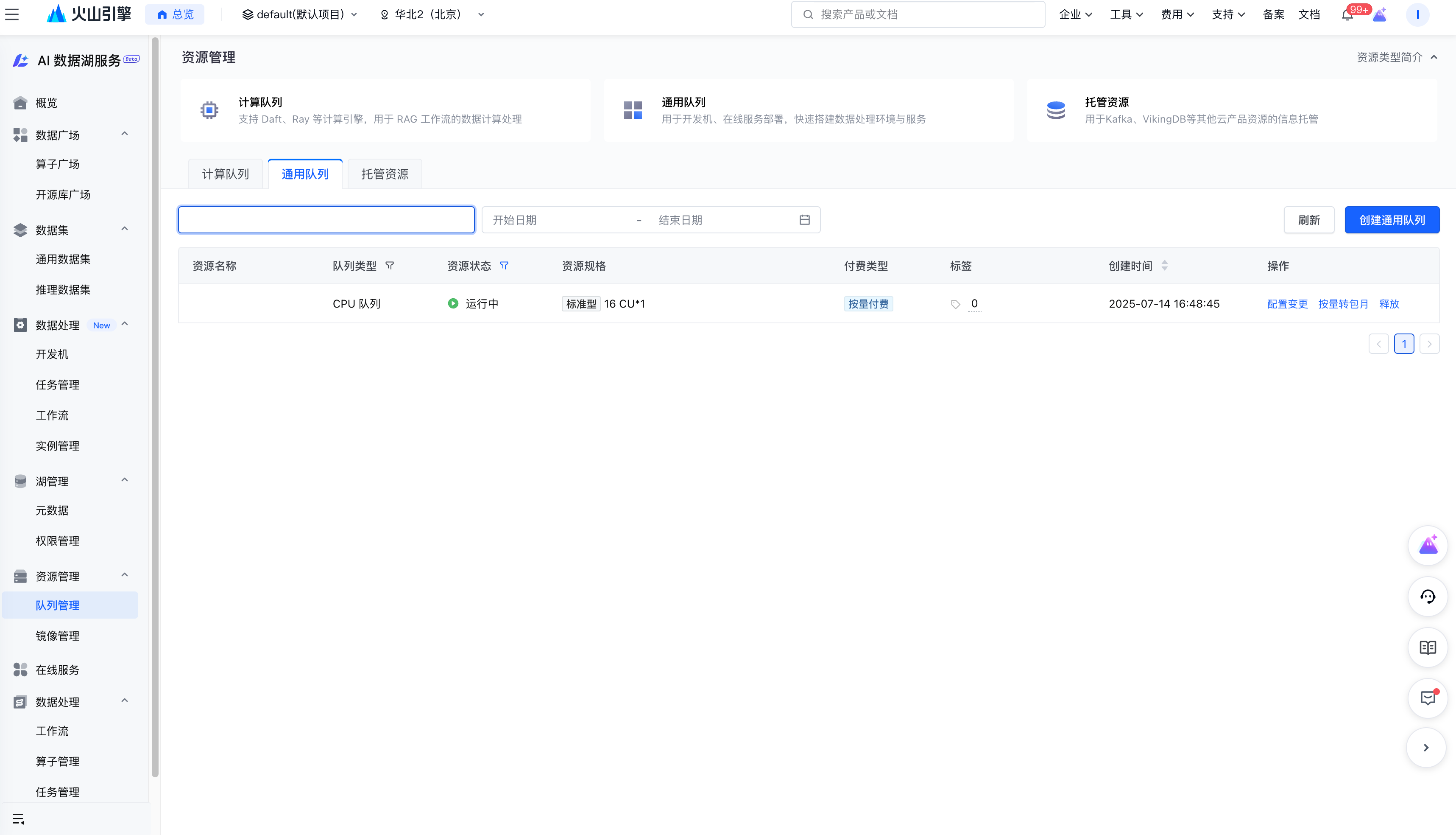 队列资源配置 | 队列类型 | CPU队列 | 支持 CPU、GPU 两种资源类型 |