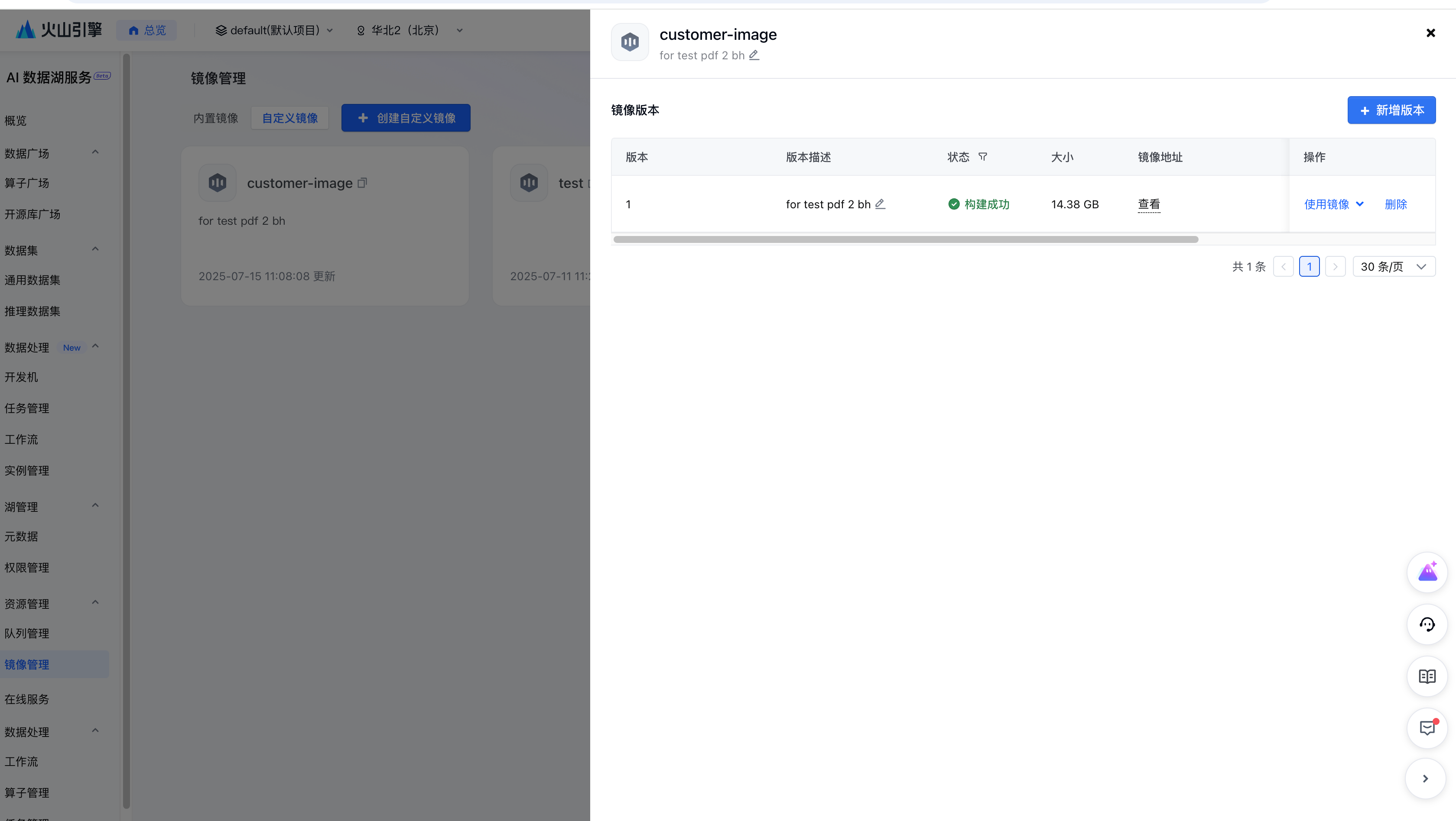 地域 | 华北2(北京) | 支持:华北 2(北京)、华东 2(上海),页面上展示当前开通区域 | |