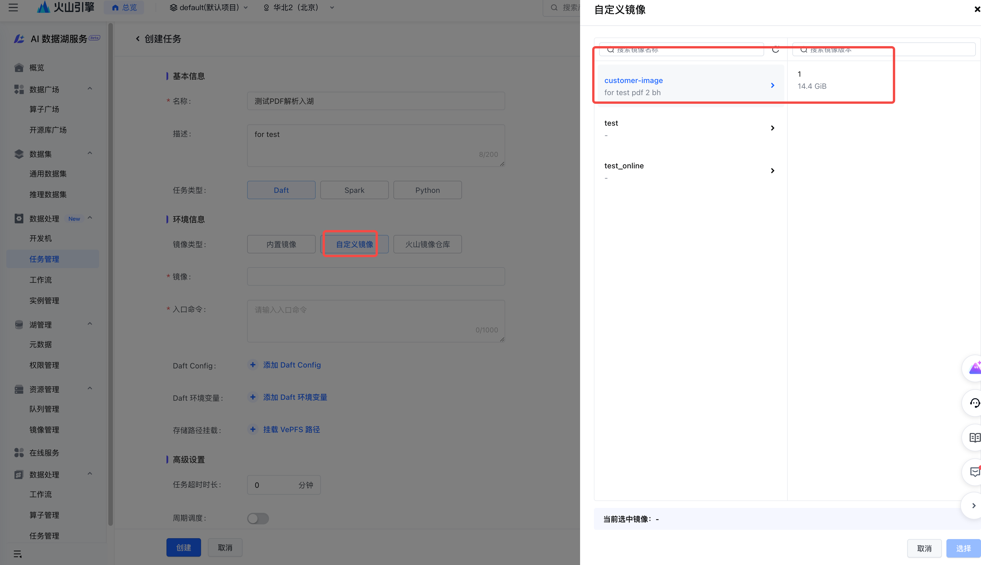 进入 数据处理 > 任务管理 页面,点击 创建任务。