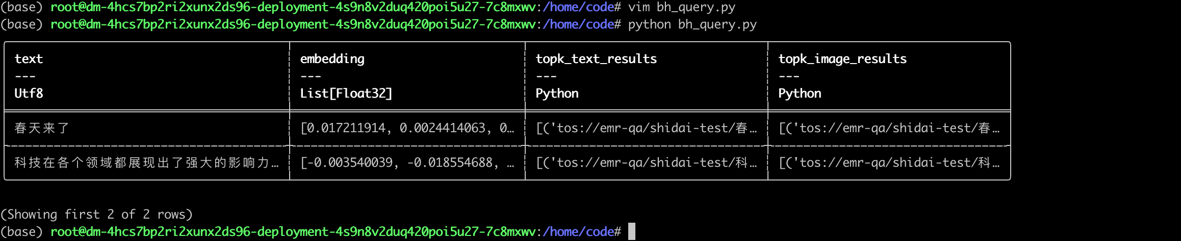 同样地,先 export ByteHouse 相关的环境变量,然后执行检索脚本。示例: