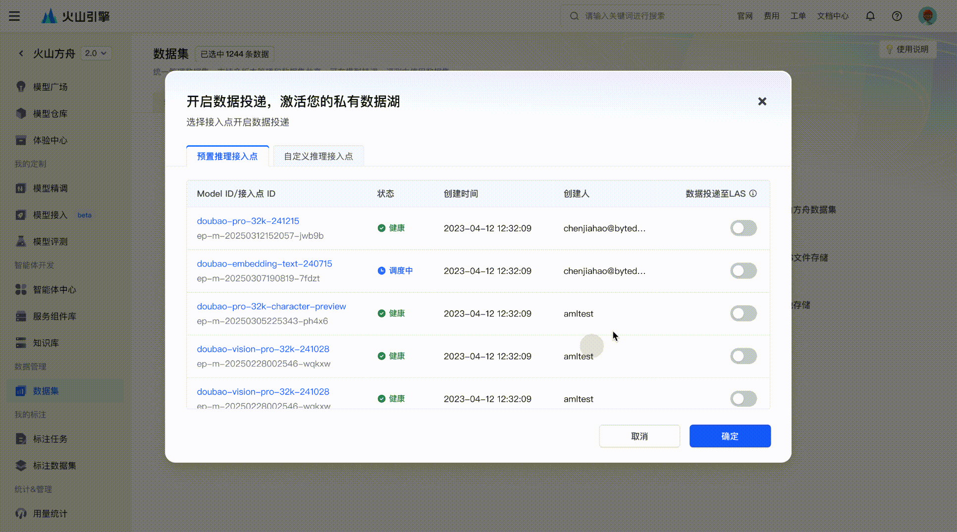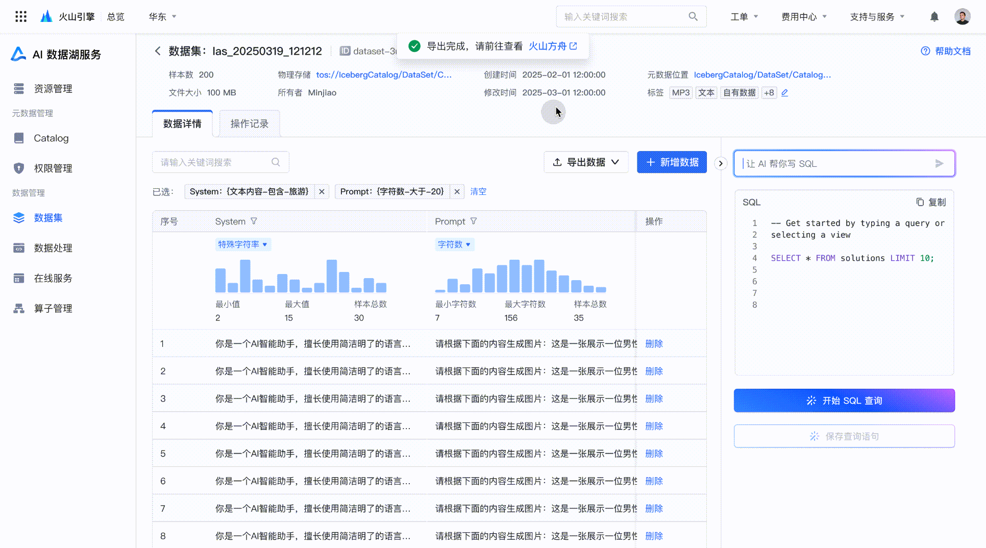 LAS依托火山引擎数据湖存储,深度融合湖格式技术构建数据集管理功能模块。