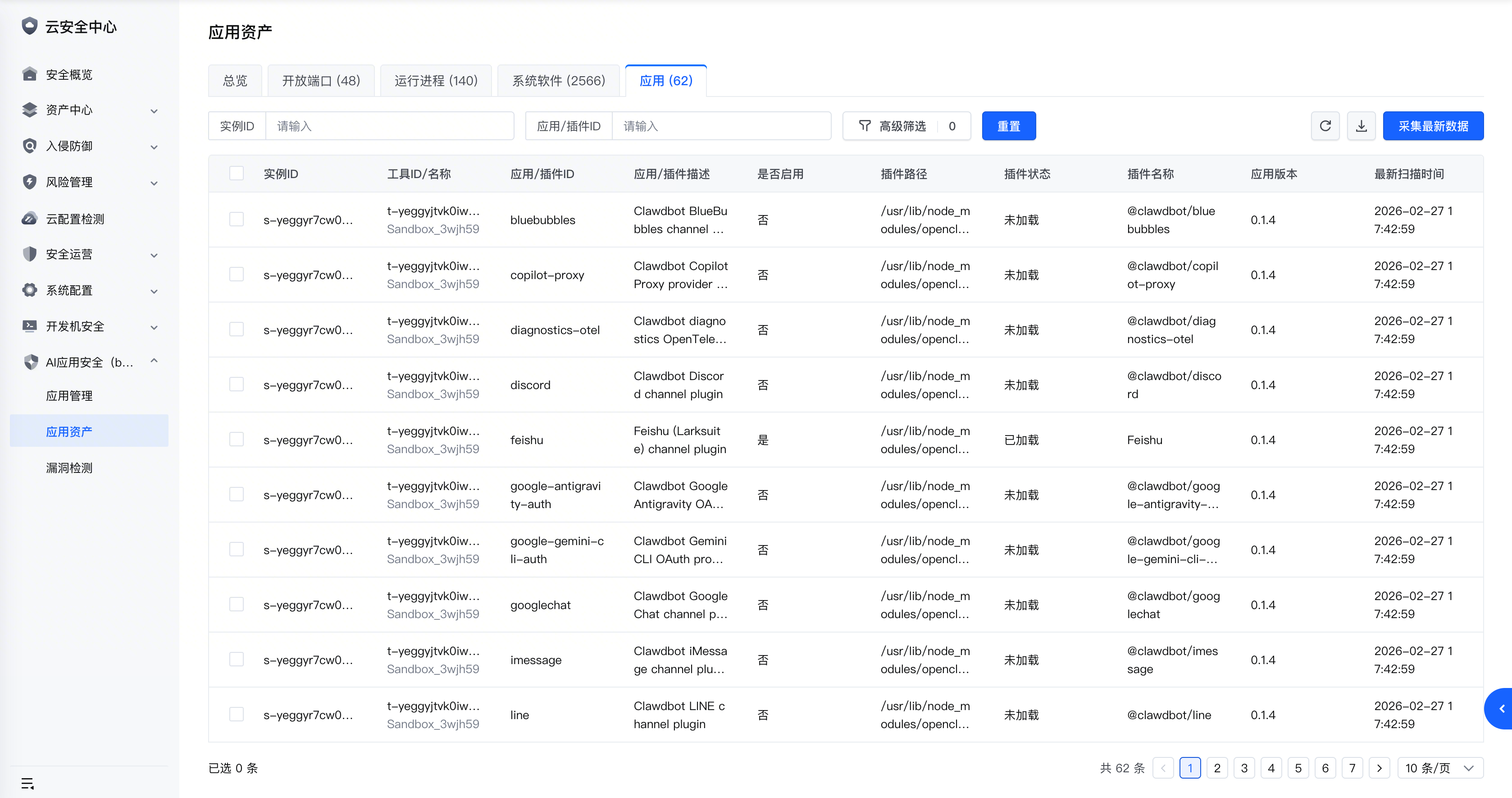 应用资产页面作为云安全中心资产清点能力的一部分,旨在帮助您集中清点和管理环境中所有服务器实例上的应用程序、运行进程、开放端口等多种类型的资产。通过此页面,您可以全面掌握资产的详细信息、运行状态和版本,以便进行统一的安全管理和风险评估。