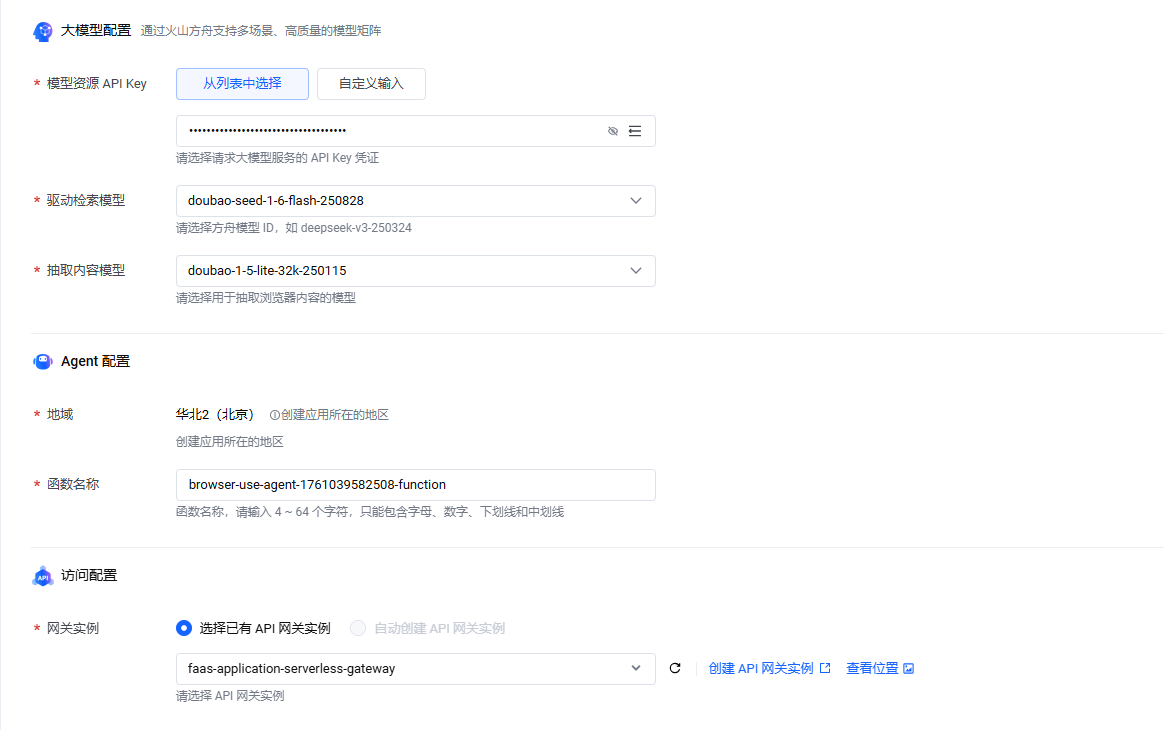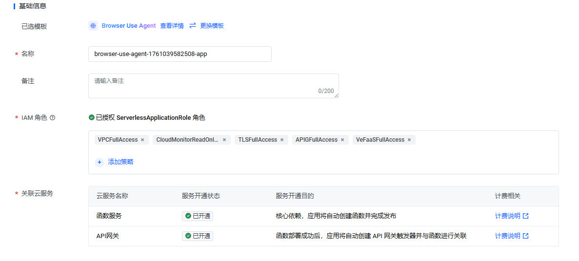 您使用函数服务快速创建了一个 Browser Use Agent 应用。 您希望用户通过全站加速的加速域名访问该应用,享用更好的传输性能。 前置条件 您已开通火山引擎函数服务,以及 Serverless AI 应用所依赖的服务,例如:API 网关、火山方舟。