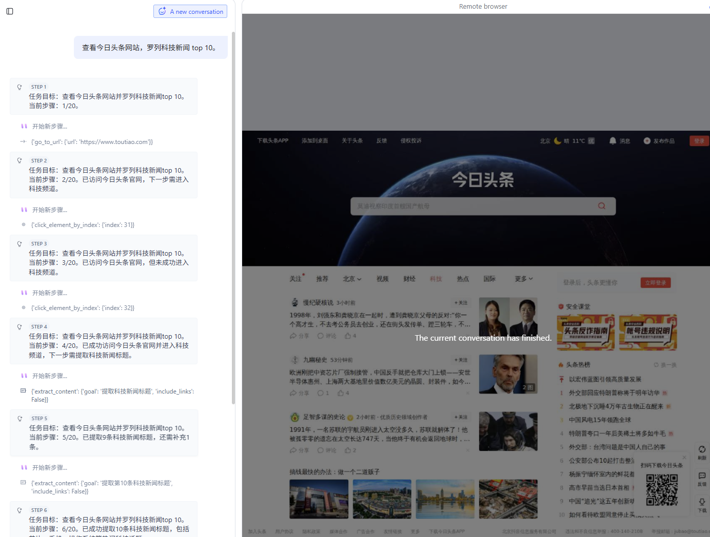 系统默认会开启 WebSocket 协议和 HTTPS 服务,并且不能取消选择。点击 完成配置 。 等待加速域名配置完成后,您可以直接用该域名访问您的函数。例如:browseruseagentXXXXXXXXX.speedifyvolcai.com 步骤三:测试通过加速域名访问 Serverless AI 应用 在浏览器地址栏直接输入加速域名,访问该地址。 当应用页面打开后,在对话框中尝试输入任务提示词,例如: