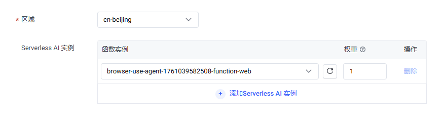Agent 配置 函数名称 您可以直接使用系统自动生成的函数名称或指定名称。 访问配置 网关实例 系统默认选择该地域的 Serverless 实例,您无需更改。
