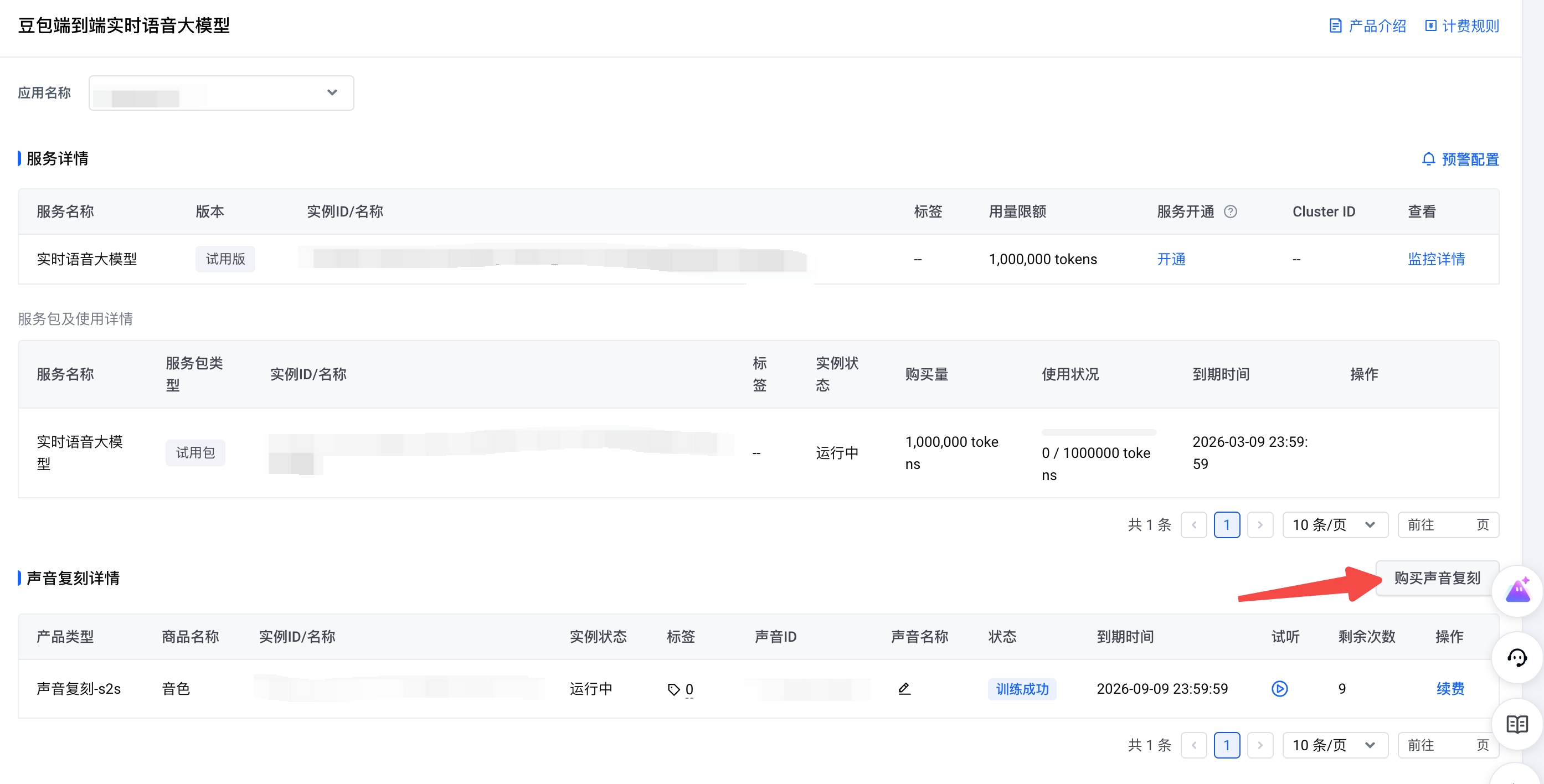注:当前“端到端实时语音大模型”控制台直接购买的克隆音色均为1.0音色,2.0音色需要前往“声音复刻模型2.0”页面进行购买。