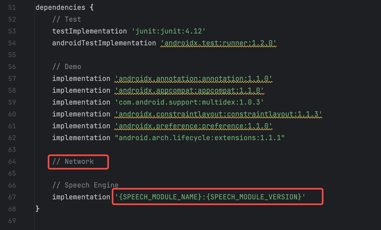 // Network implementation 'com.bytedance.boringssl.so:boringssl-so:{LATEST_VERSION}' implementation('org.chromium.net:cronet:{LATEST_VERSION}') { exclude group: 'com.bytedance.common', module: 'wschannel' } implementation 'com.bytedance.frameworks.baselib:ttnet:{LATEST_VERSION}' // Speech Engine implementation 'com.bytedance.speechengine:speechengine_tob:{LATEST_VERSION}'