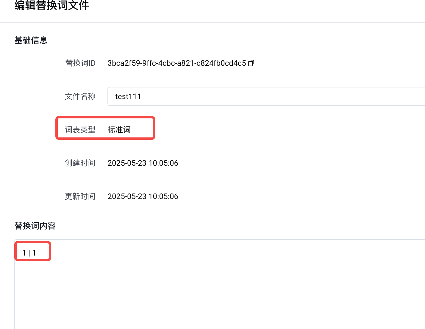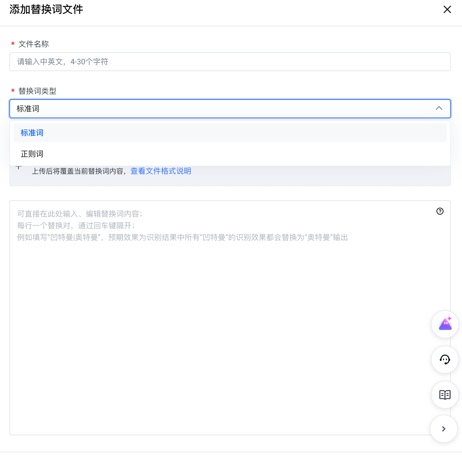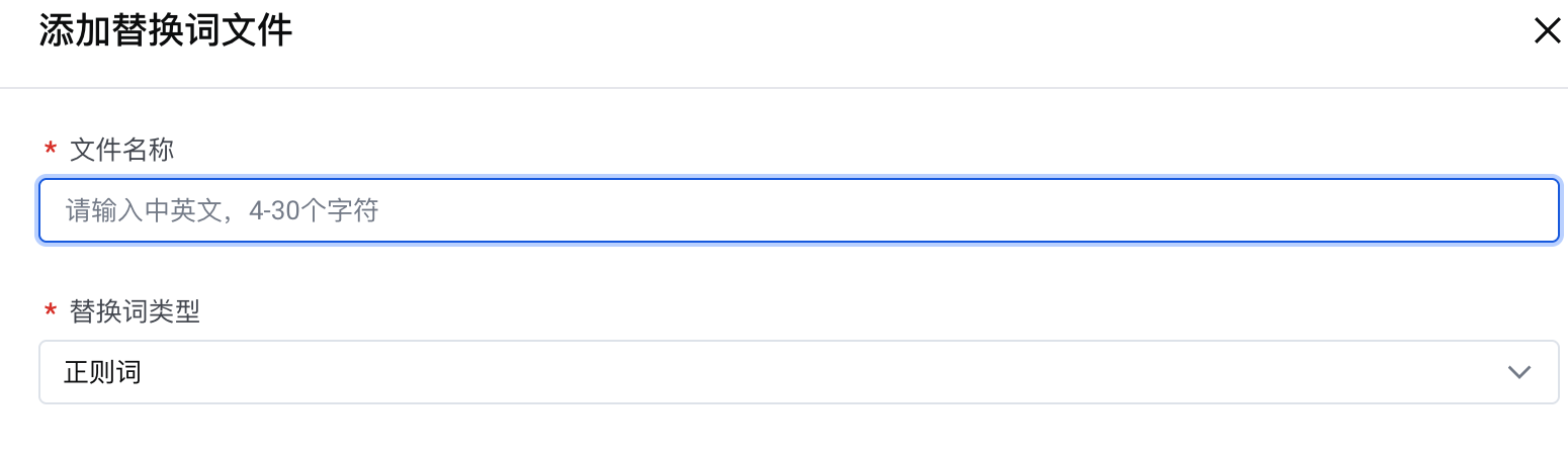 type, where when type = 'regex_correct', it indicates the type for regex replacement words."