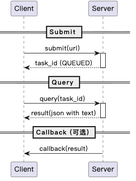 调用形式为提交任务(submit) → 轮询查询(query)。