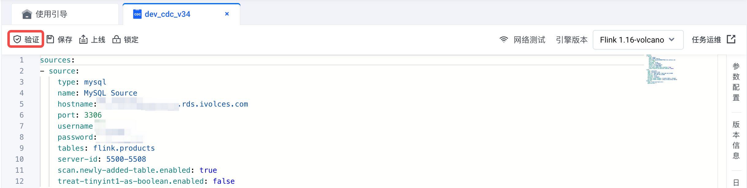 在 Flink CDC 任务中,点击“验证”按钮后,如下: