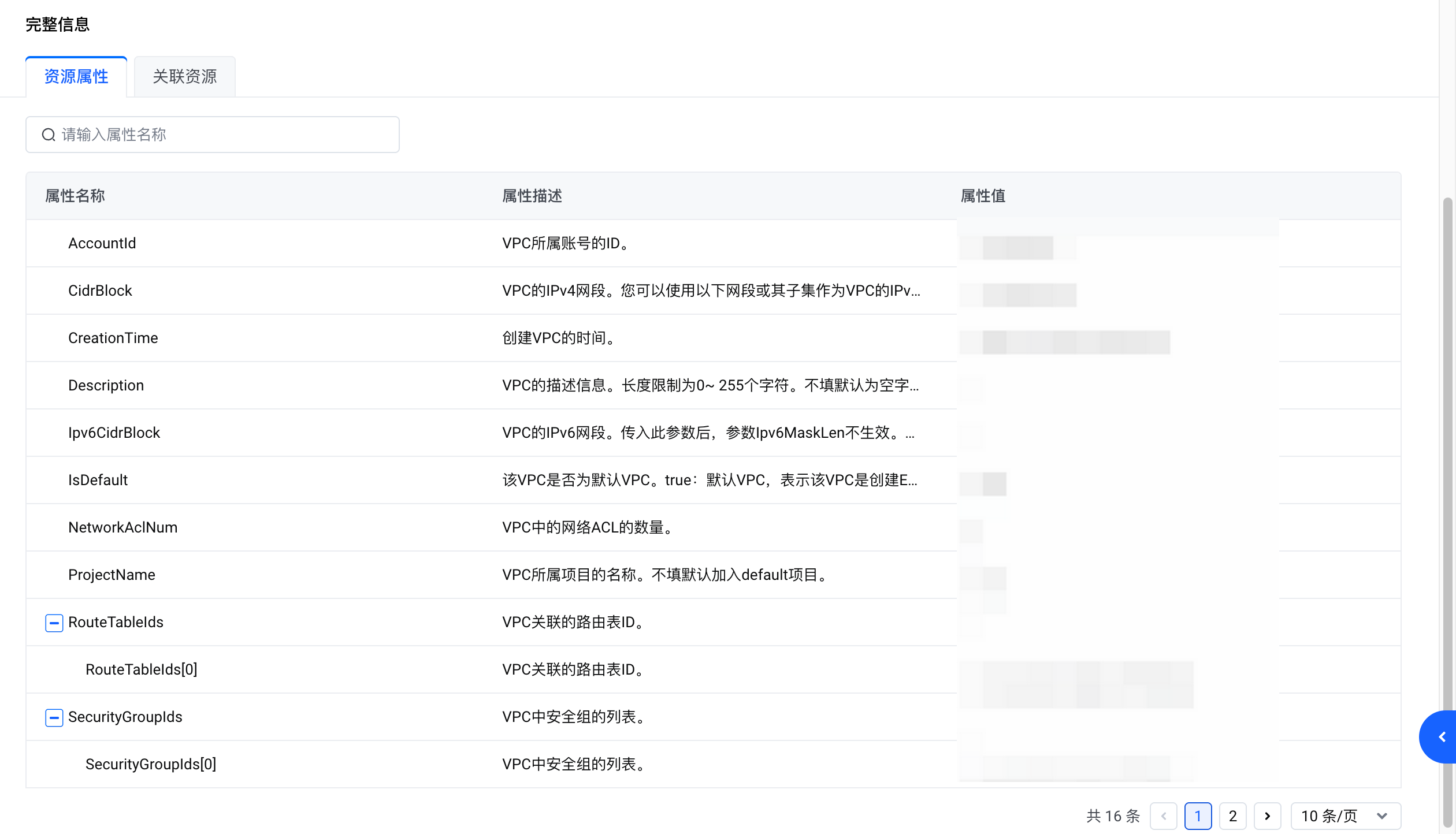 目前仅部分资源支持查看详情,支持的资源可以通过 ListResourceTypes 筛选返回结果有 TypeName 的资源类型