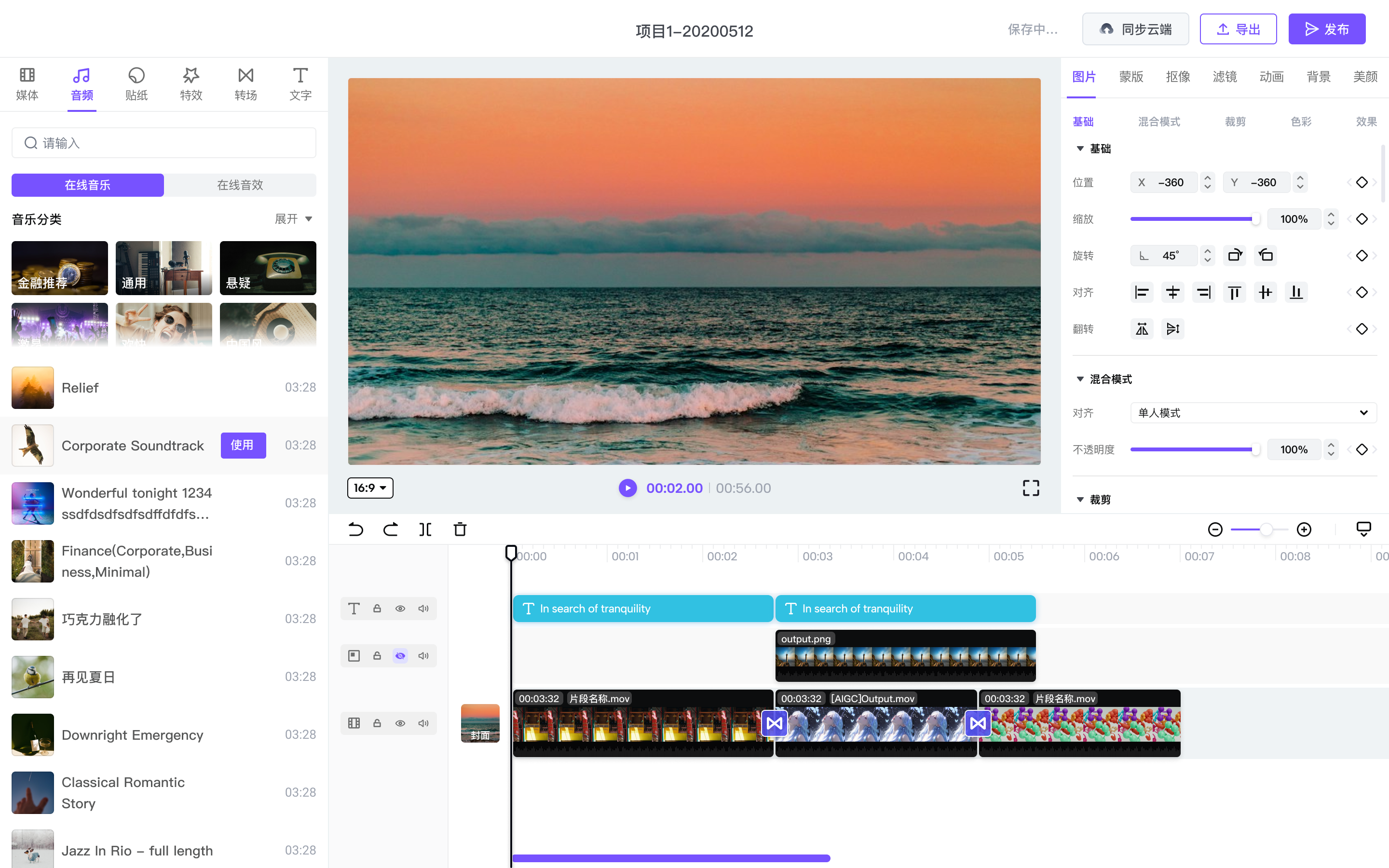 点击编辑按钮,在编辑器中打开多轨道视频草稿进行编辑