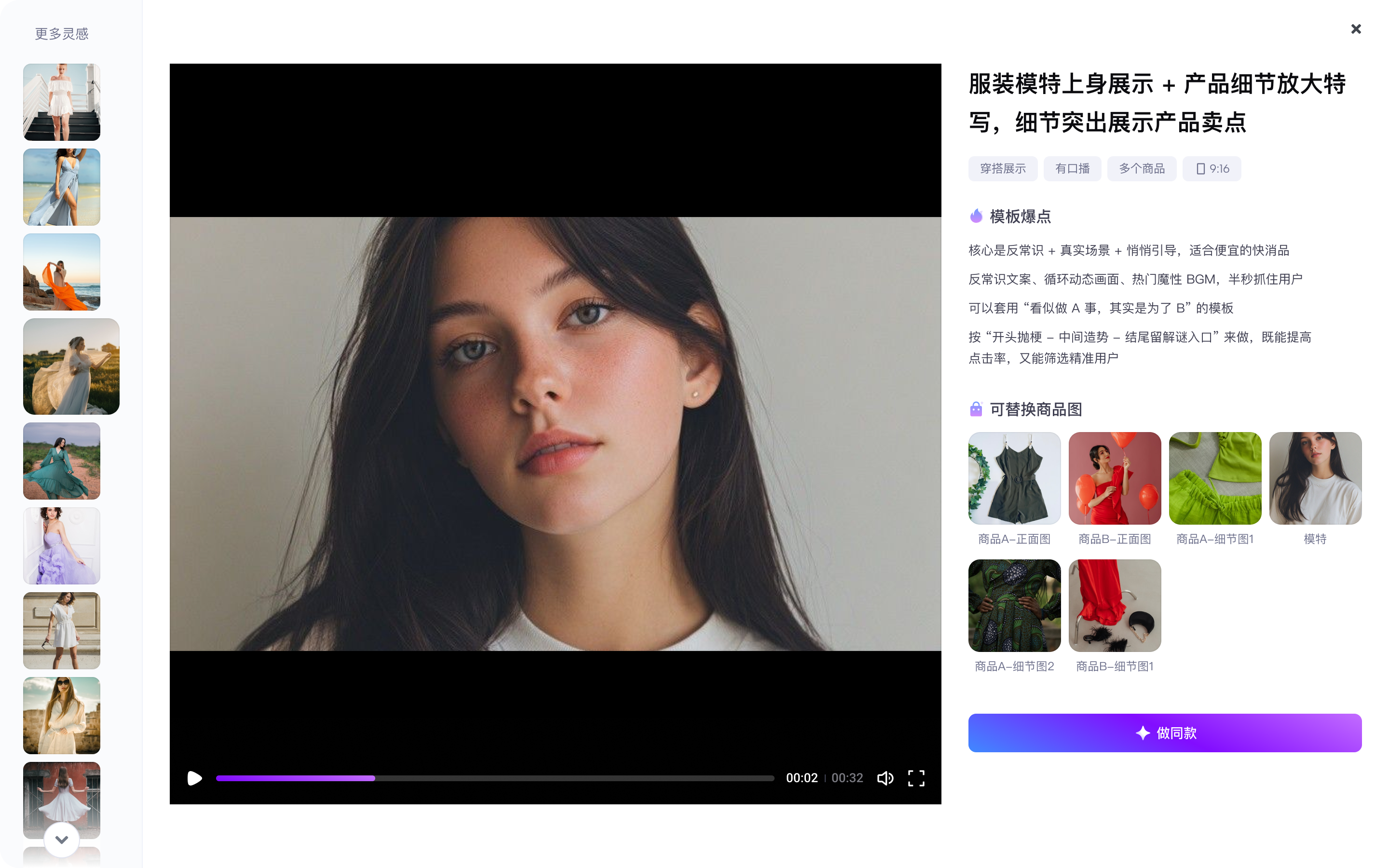 模板爆点:可以了解模板适配的品类与场景,视频叙事结构,以及突出的视觉表达