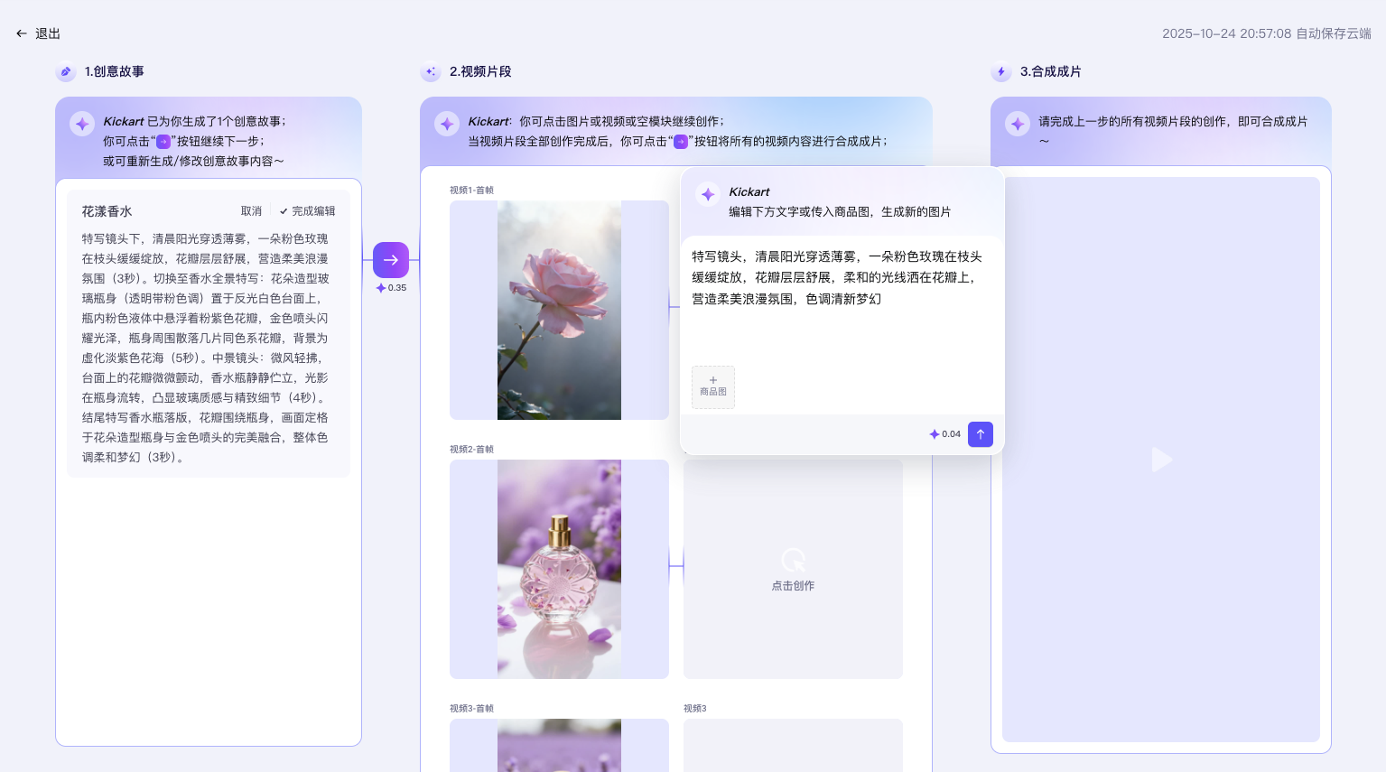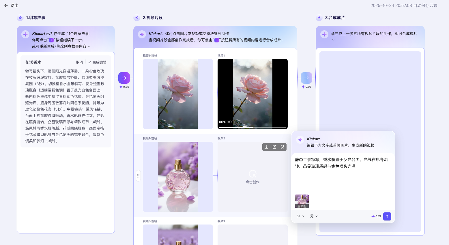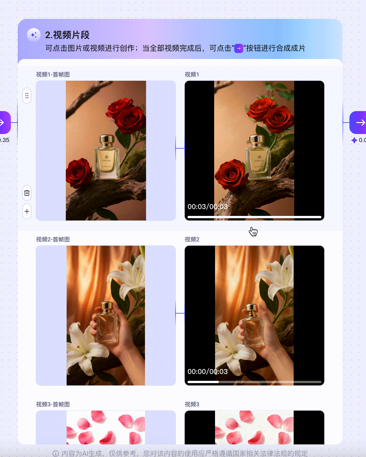 分步创作:输出的视频支持展开分步查看,局部调整某个视频片段
