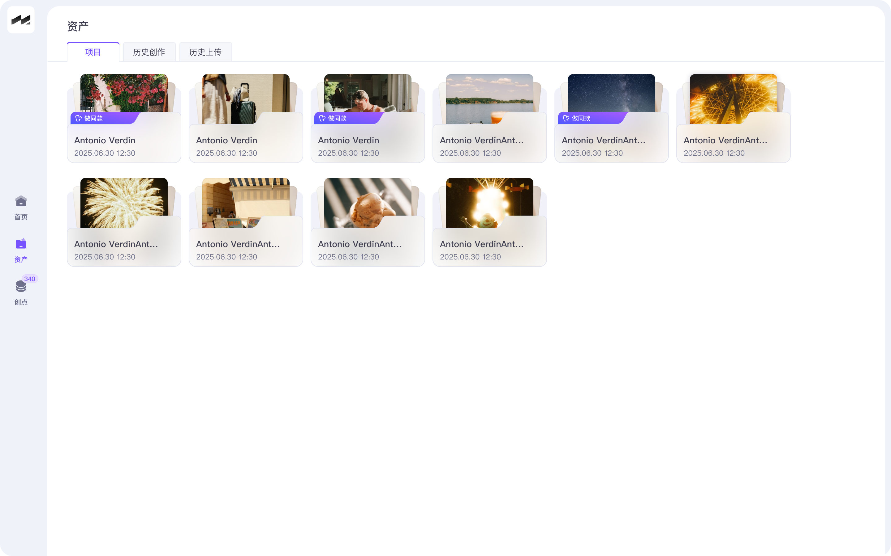 平台所有创作都会被自动保存为一个“项目”,特别地,通过“做同款”功能生成的项目,在这里会自动带上“做同款”标签,方便你溯源模板