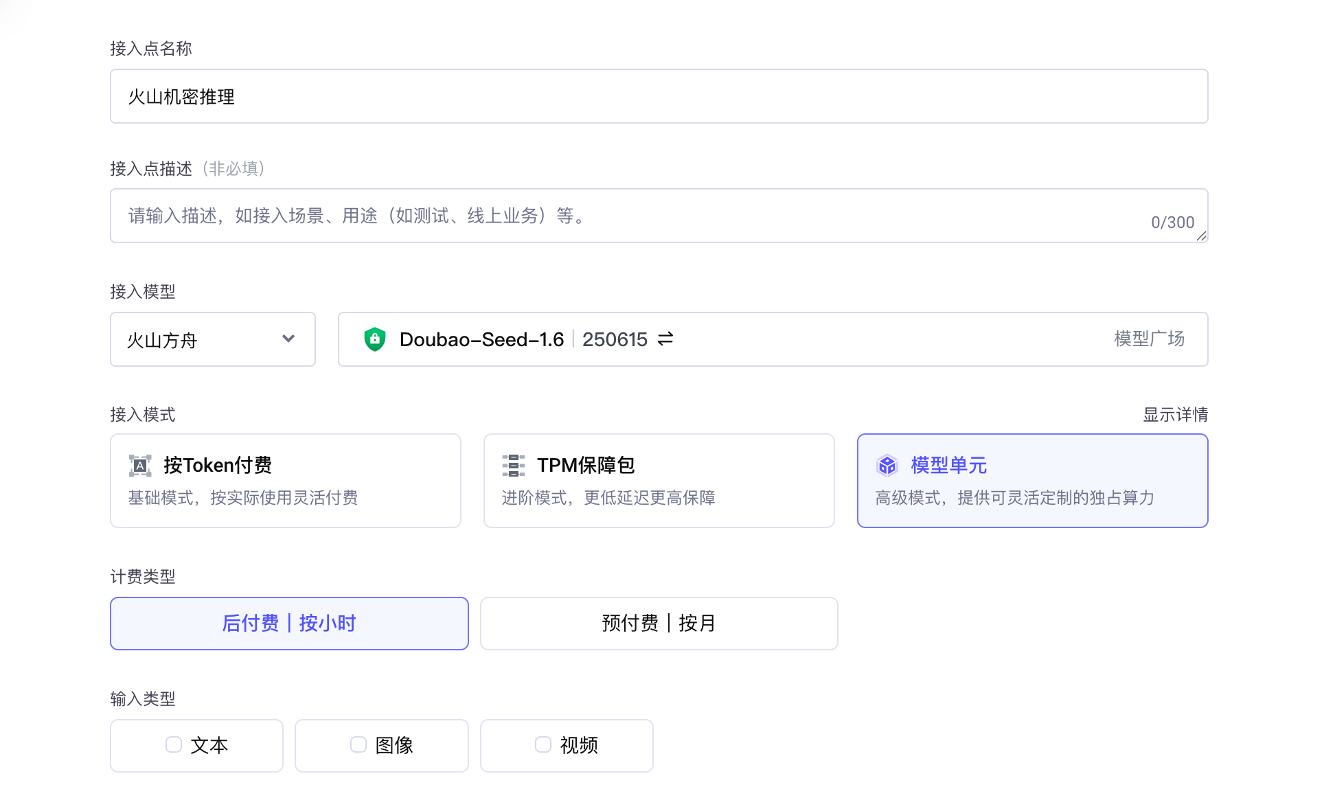 输入类型 | 部署方式 | 配置资源 |