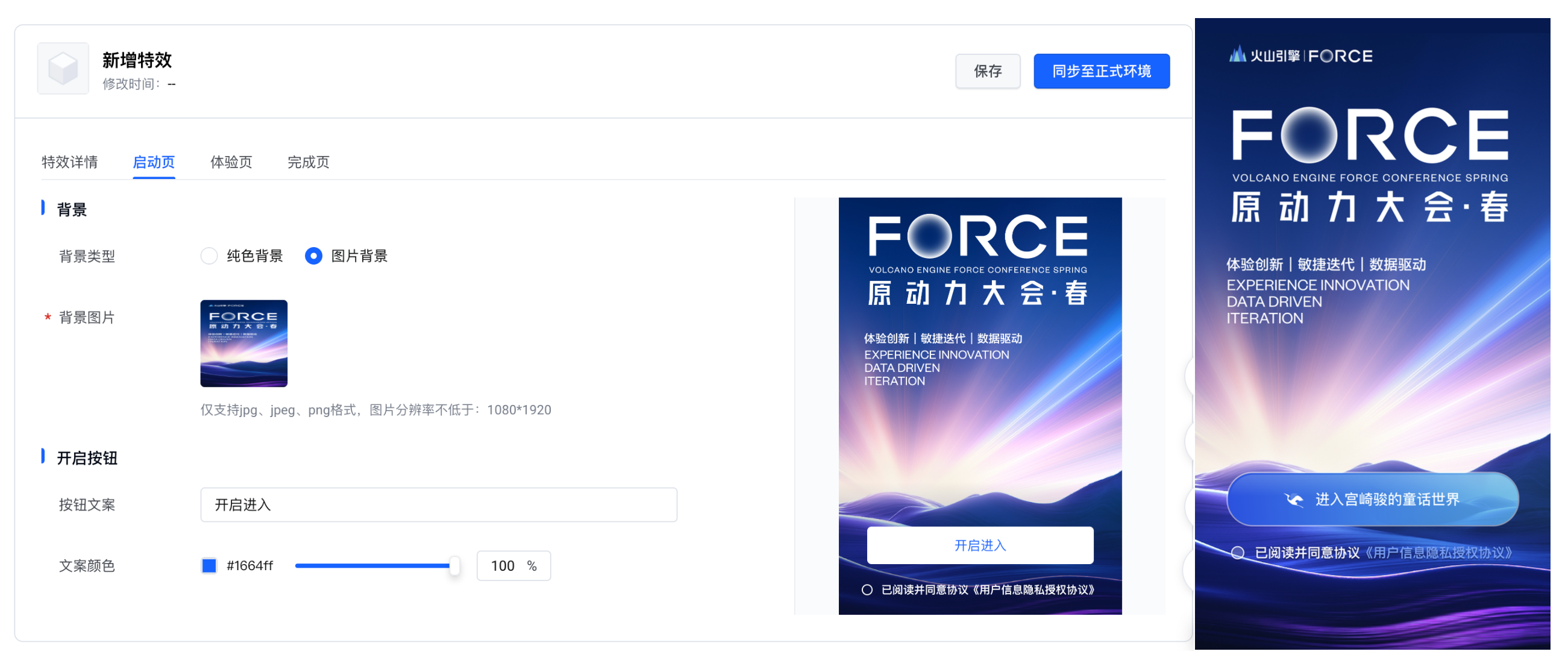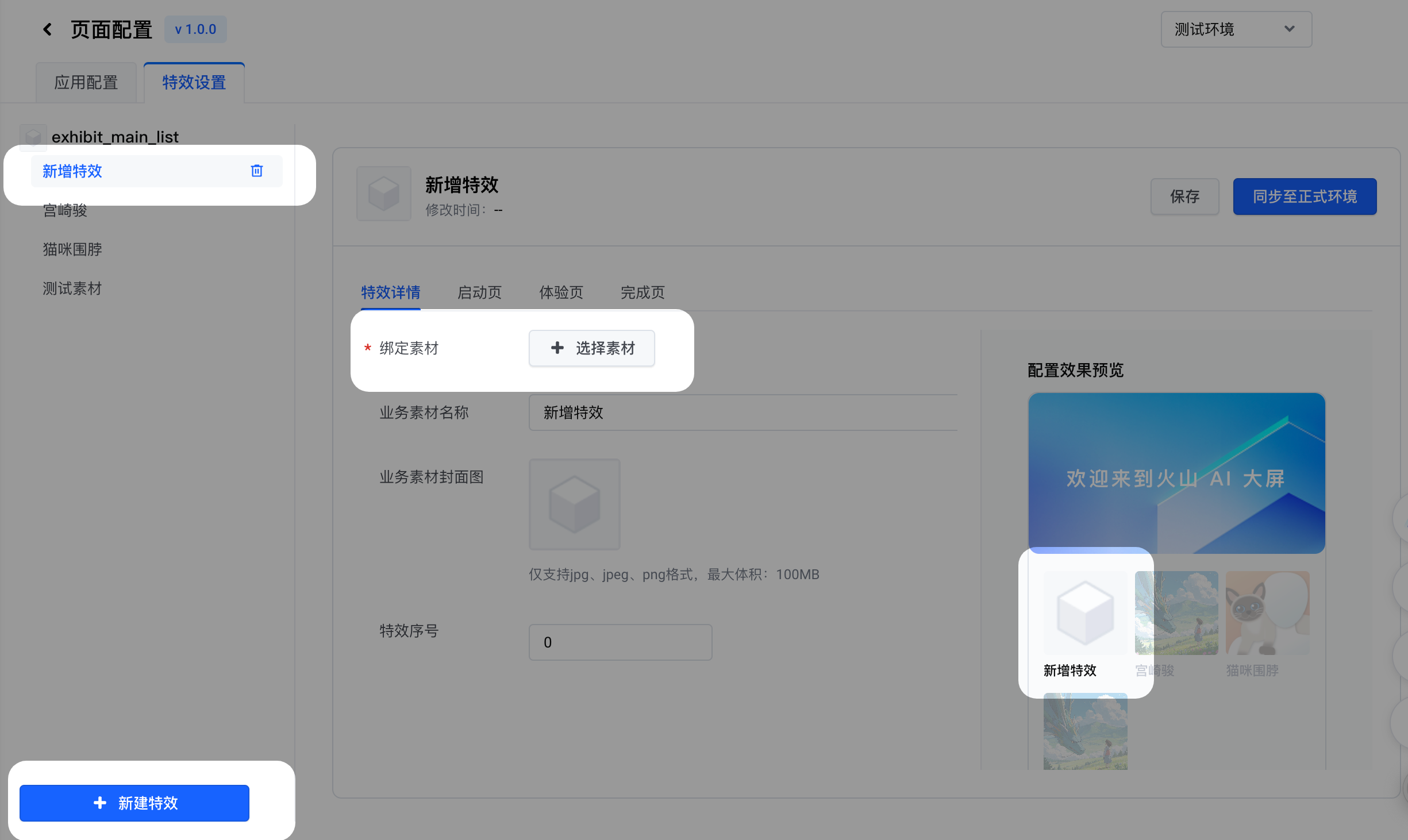 - 如仅需下发素材,不涉及其他页面配置,则只需新增特效,无需配置其他内容