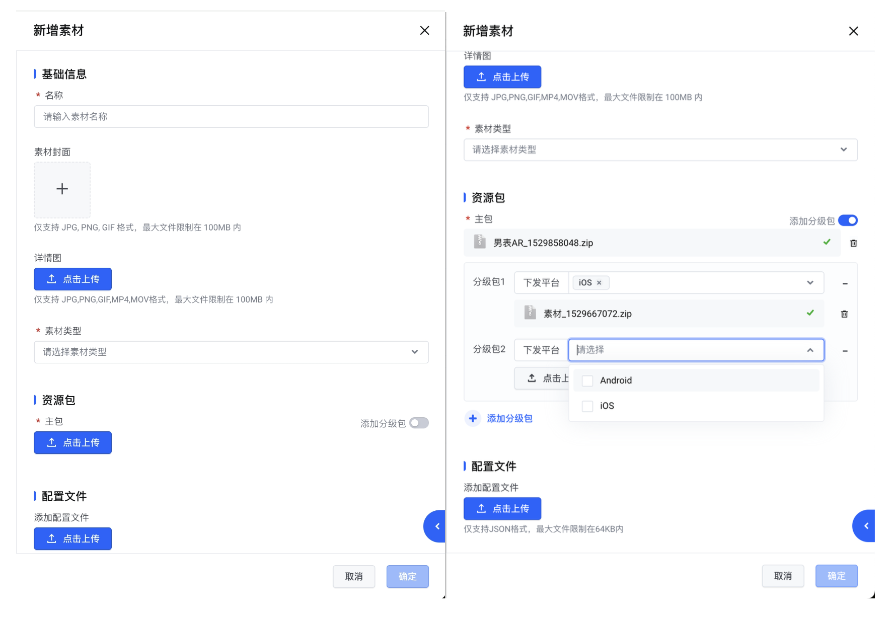 配置分级包:支持用户根据不同的设备类型设置不同的资源包分发