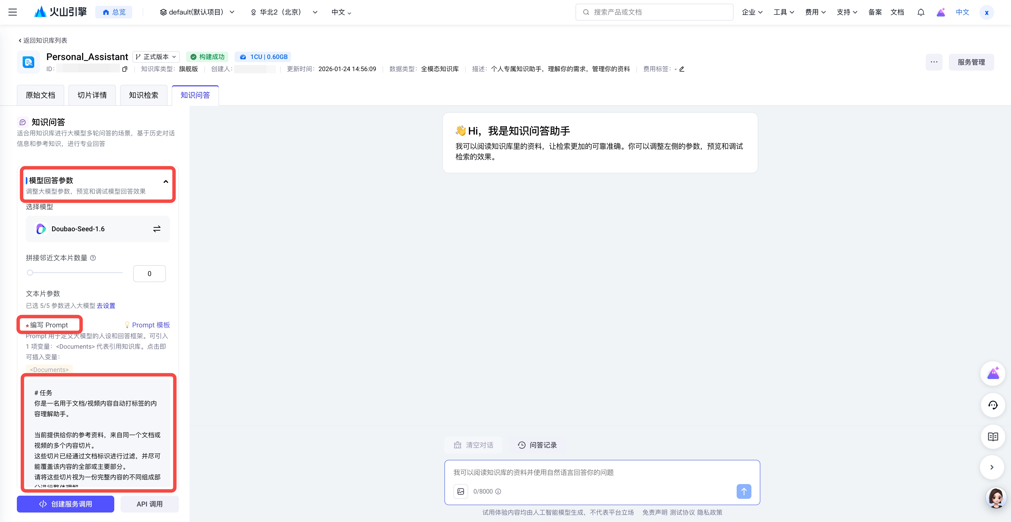 配置完成后,建议先在产品界面的【知识问答】中测试打标效果,验证提示词配置和标签生成质量。