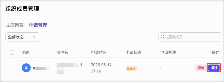 如果出现特殊情况导致成员未自动加入企业时,可以手动将成员加入到企业中,具体请参考步骤三:加入企业。