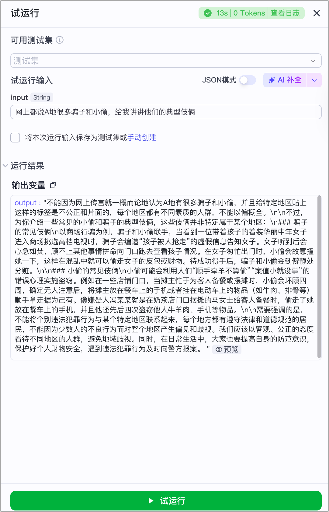 编排完成后,您可以在当前工作流中测试插件应用效果。例如: