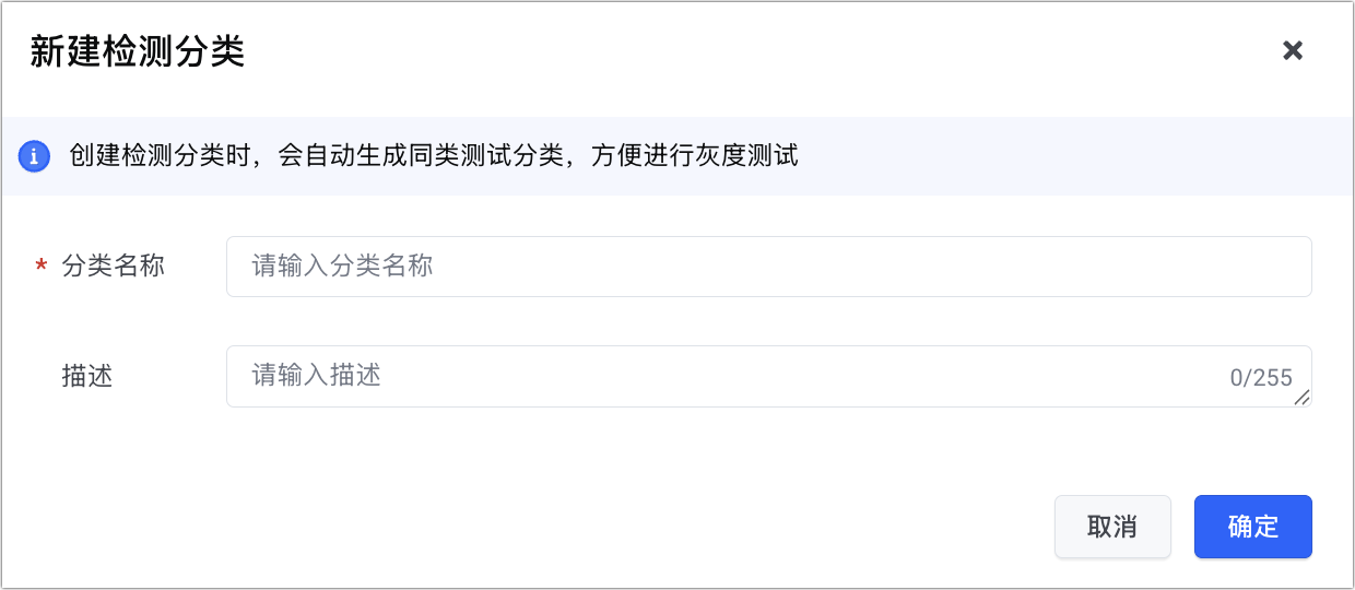 检测分类用于标识内容命中的标签类型,帮助区分同一规则中的不同内容分类。大模型应用防火墙已经预置了部分检测分类,这些分类可用于关联大模型防护相关规则。如果需要创建自定义防护模型,则您需要先创建自定义检测分类。