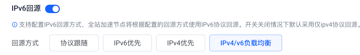 | IPv6 回源方式 | 加权轮询 | 智能择优 |